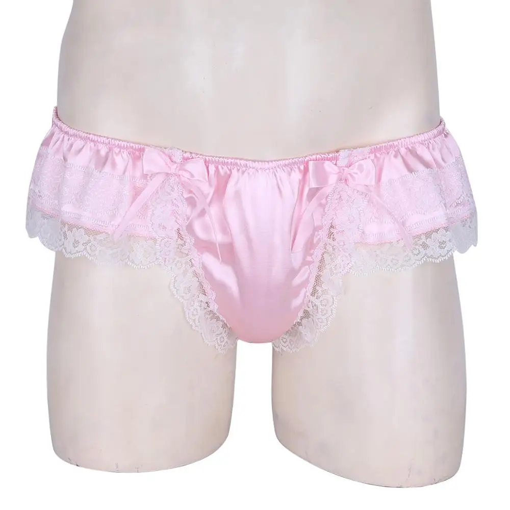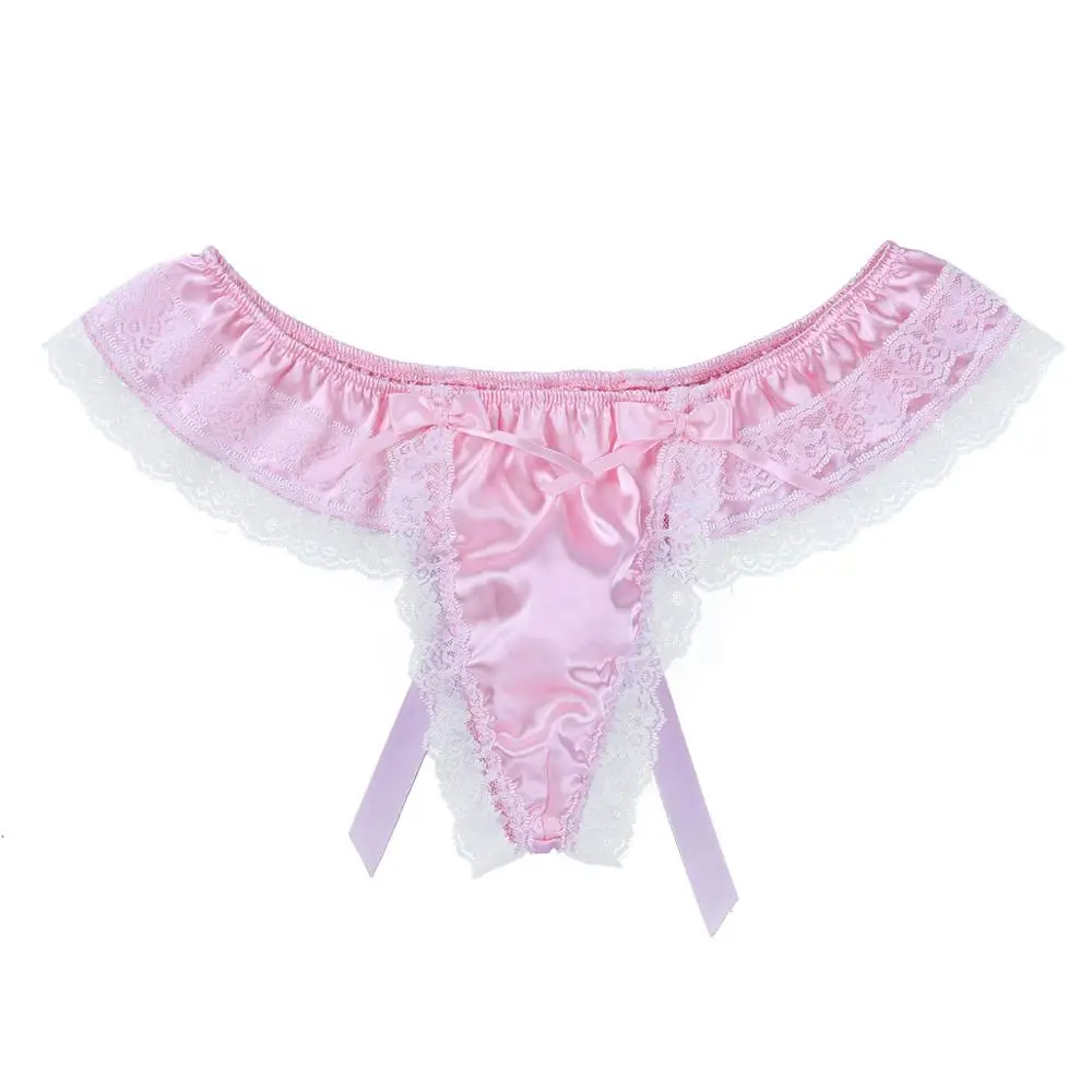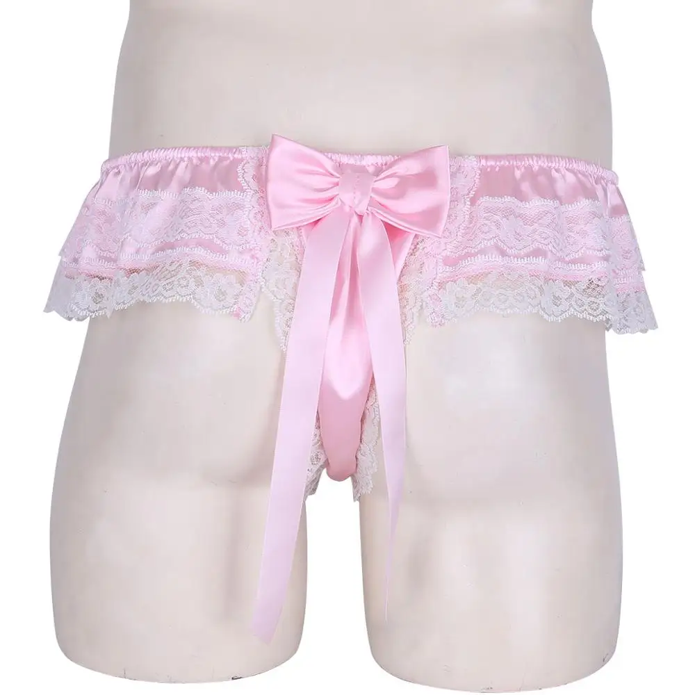 Feeshow мужское блестящее мягкое атласное нижнее белье, двухслойное цветочное кружевное нижнее белье с бантом на спине, нижнее белье с низкой посадкой, мужские трусы