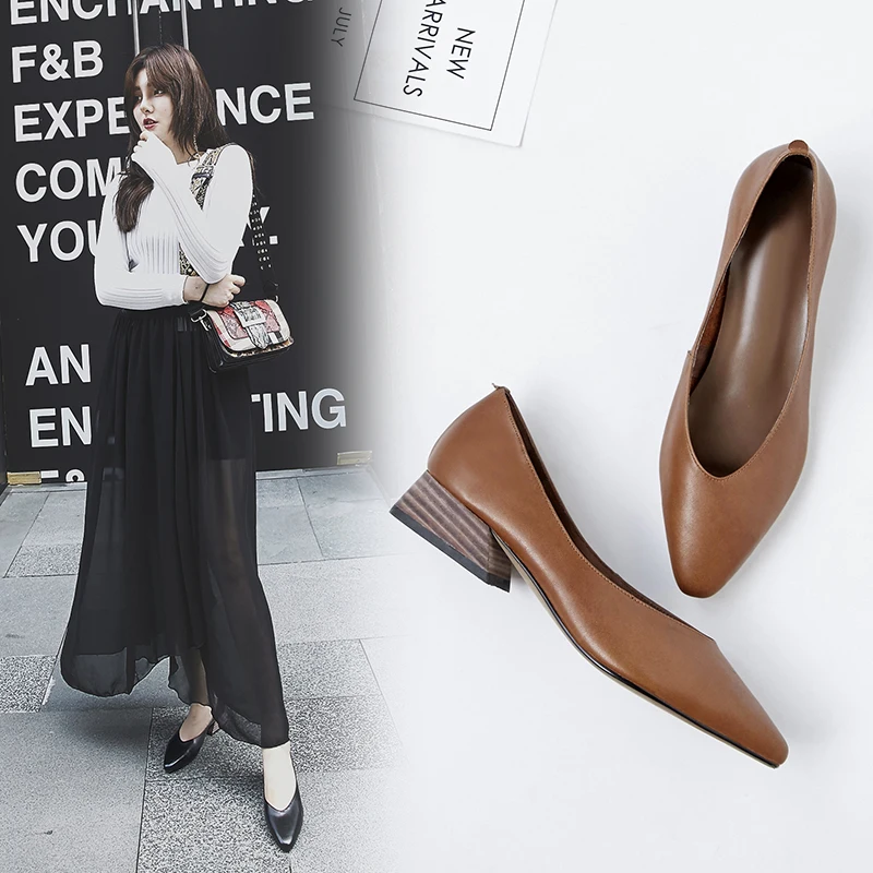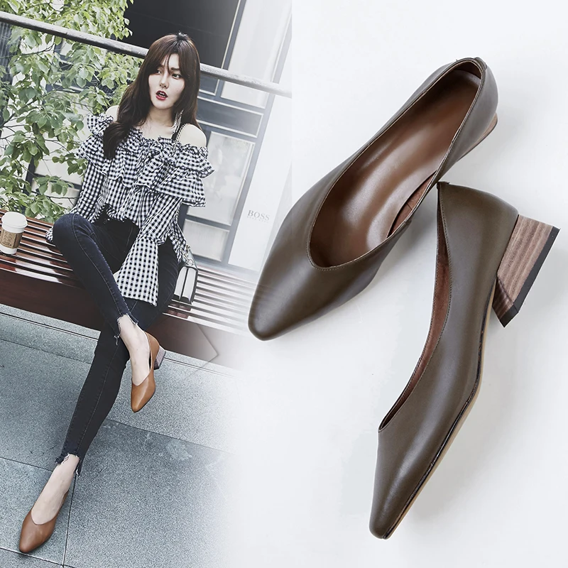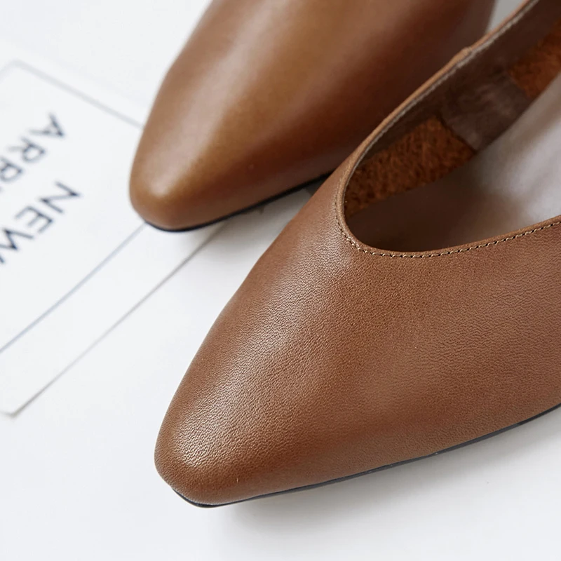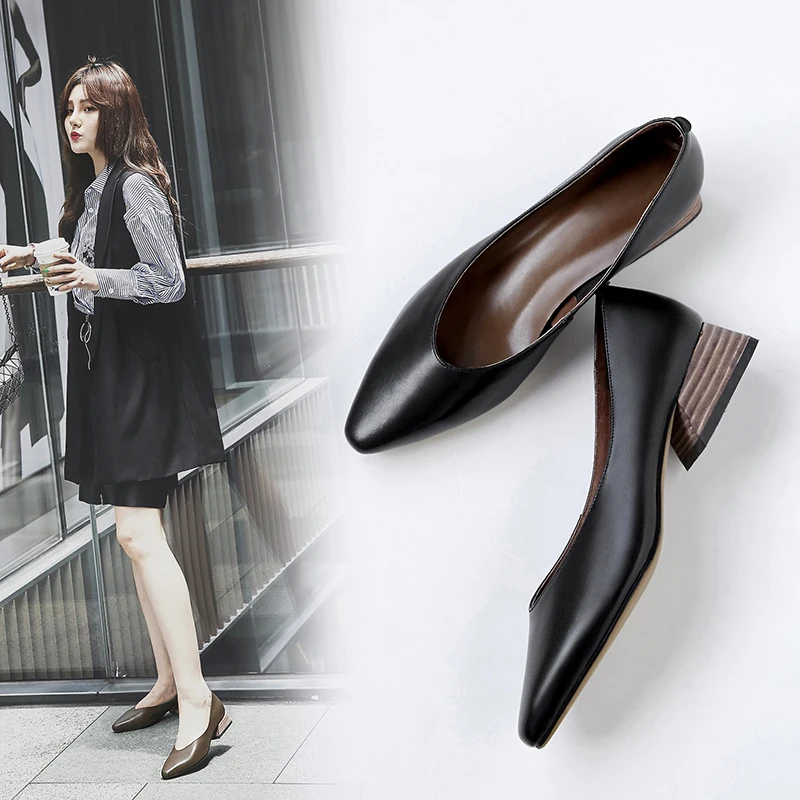 Туфли-лодочки женские из натуральной коровьей кожи, с острым носком, на низком каблуке