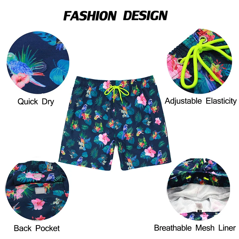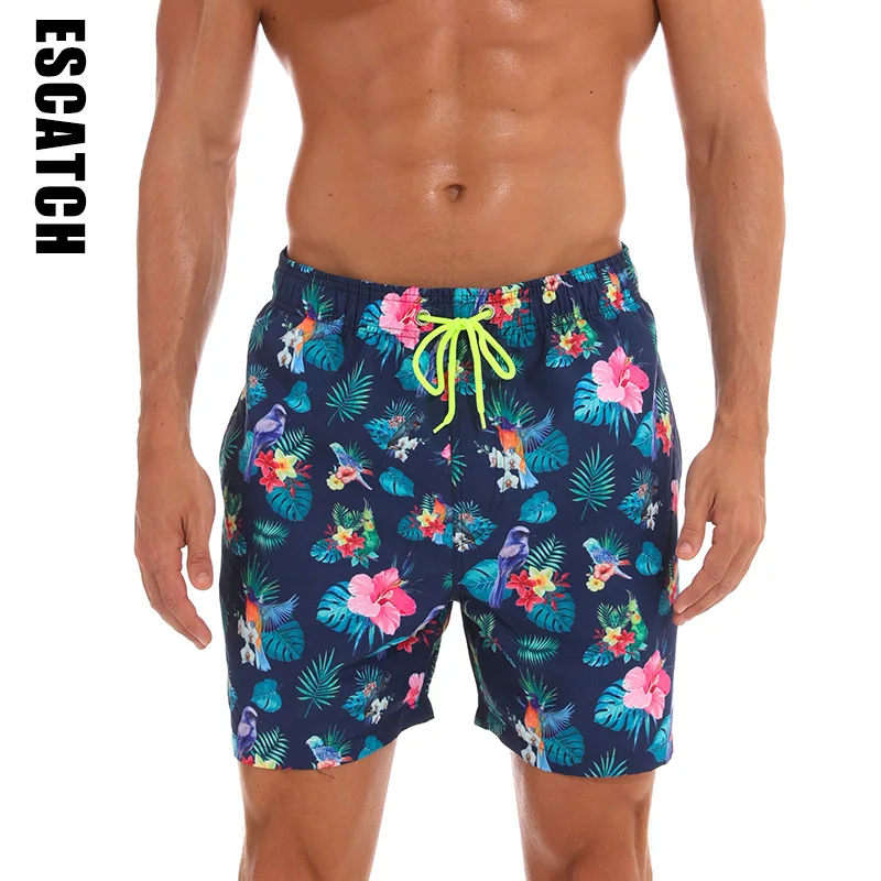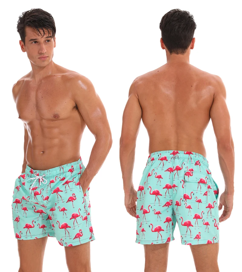 Шорты Escatch мужские быстросохнущие, пляжные бермуды с принтом фламинго для серфинга и плавания, летние