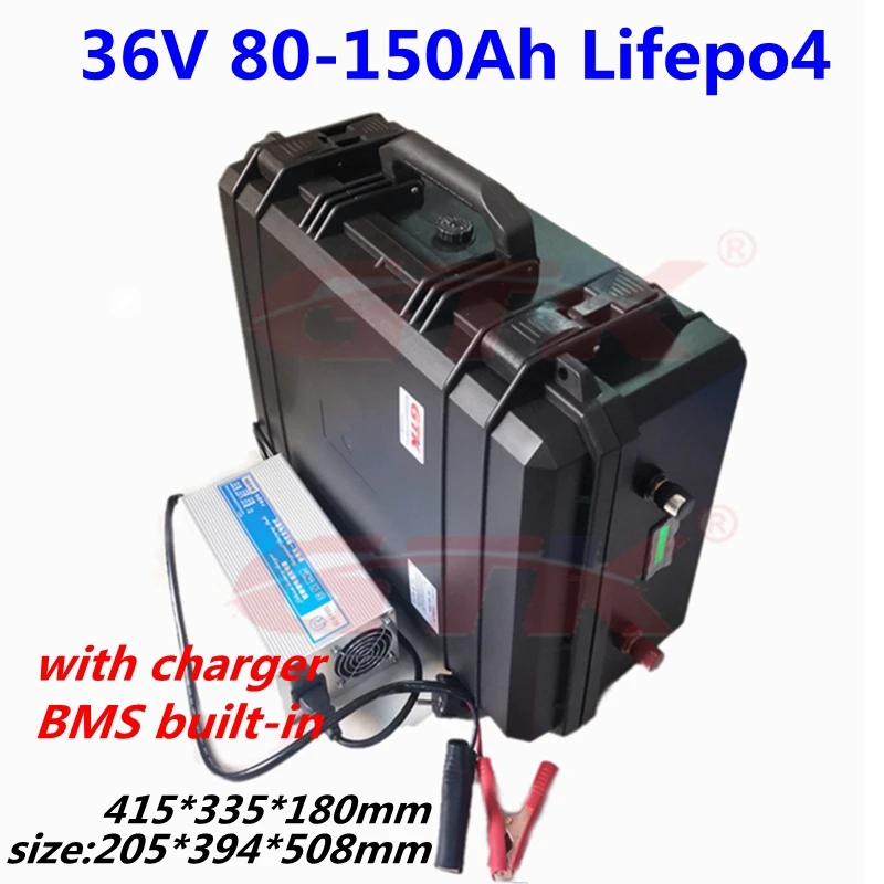 Водонепроницаемый ip67 36V 80Ah 100Ah 120Ah 150Ah LiFepo4 литиевый аккумулятор BMS 12s для троллинга моторной лодки солнечной системы + зарядное устройство 10A