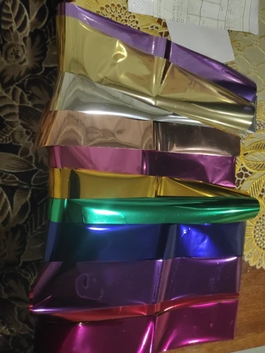 фольга отличная. на фото немного поцарапанная но но это не проблема продавца потому что я её повредила при доставании из пакетика. в целом посылкой очень довольна пришла за 2 недели. думала что будет плохая фольга. я заказывала на свой страх и риск но теперь я вижу, что буду заказывать в этого продавца вновь.