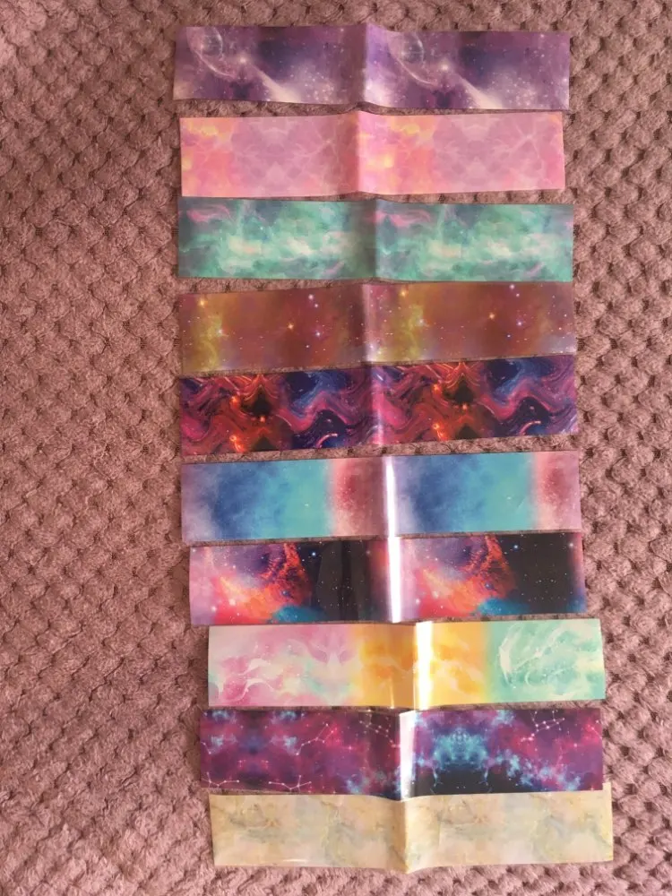 фольга хорошего качества, отлично отпечатывается, только не пожалейте средств и приобретите специальный гель для фольги, там липкий слой хороший и она отпечатывается без повреждений. все точно по количеству и размеру, покупкой довольна, посылка ровно месяц, продавца рекомендую