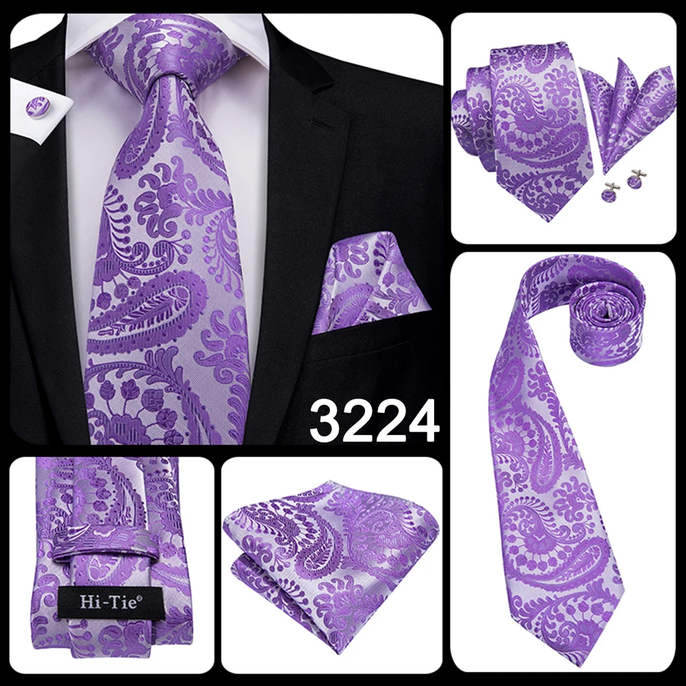 Hi-Tie, роскошные шелковые фиолетовые Свадебные Галстуки с узором пейсли для мужчин, Hanky запонки, подарочный набор Никки, модный дизайн, деловые мужские галстуки