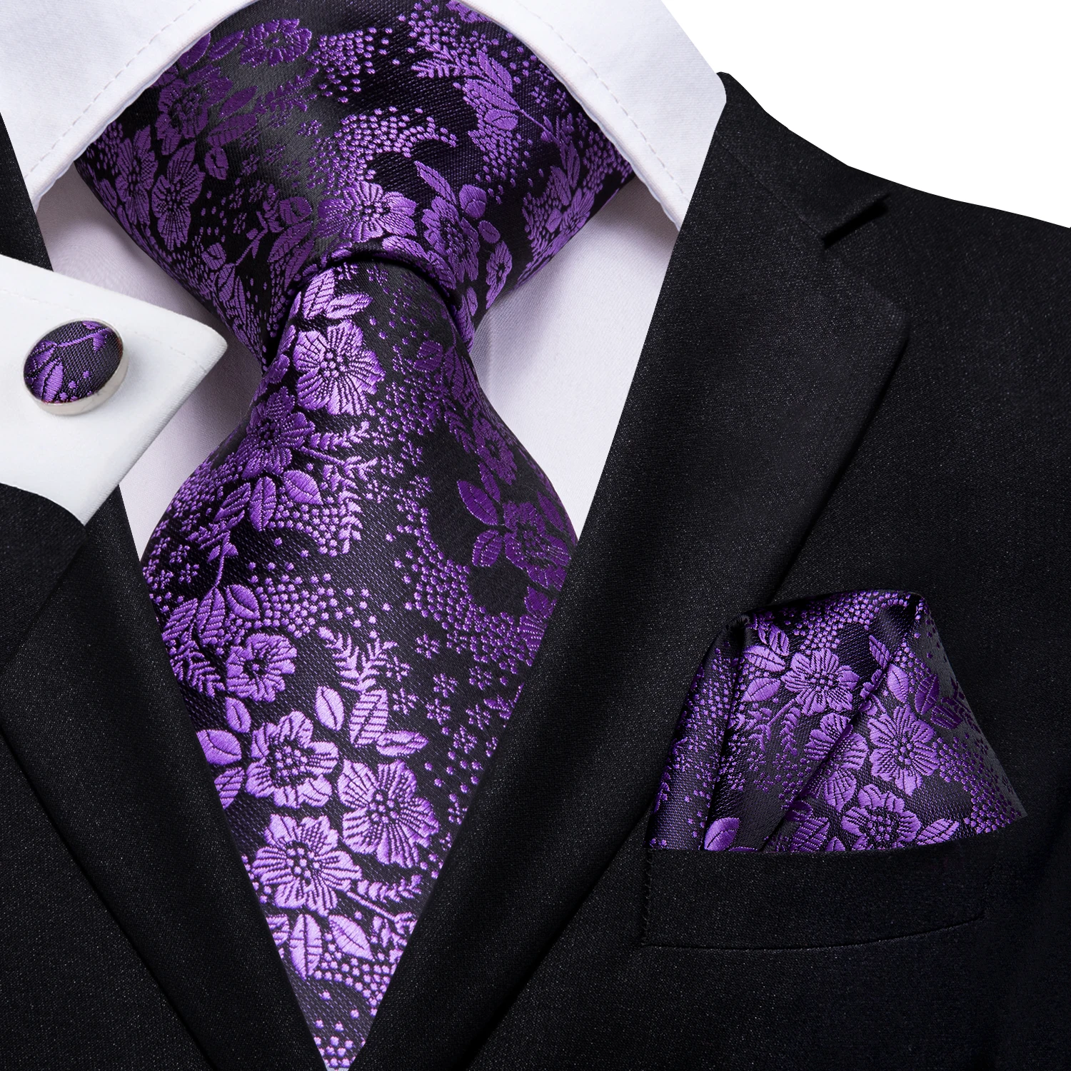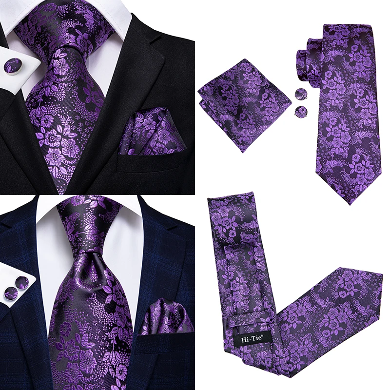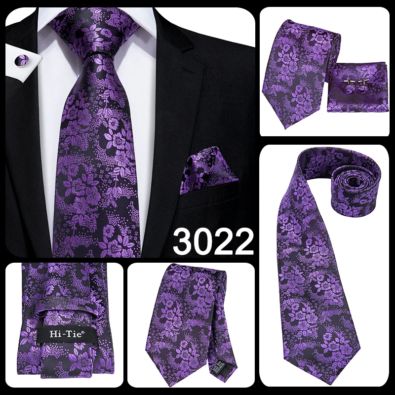 Hi-Tie роскошные шелковые фиолетовые галстуки с цветочным узором пейсли для мужчин, набор галстуков и носовых платков, модные дизайнерские деловые свадебные мужские галстуки