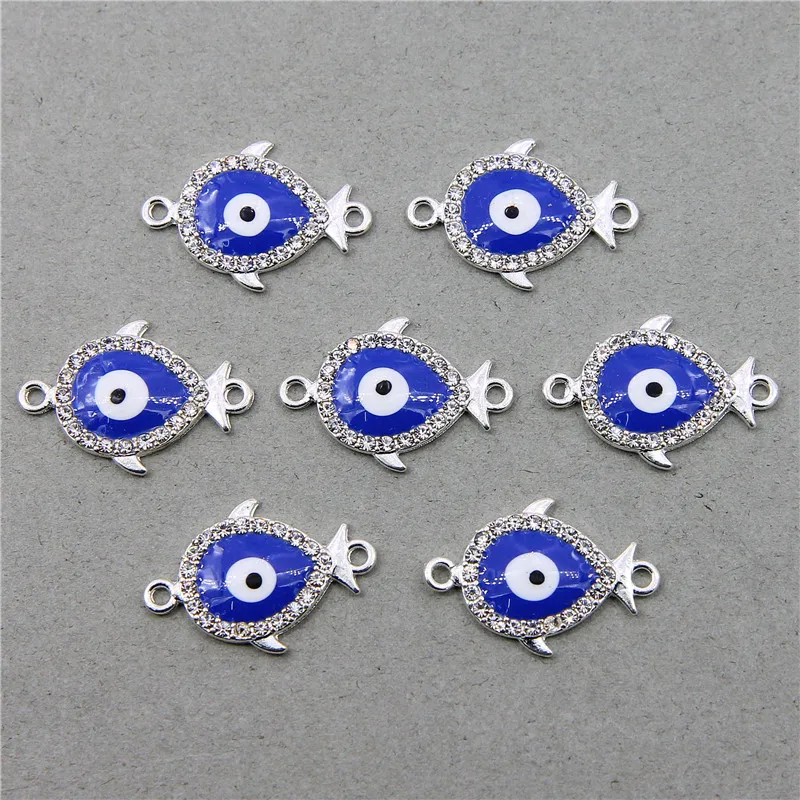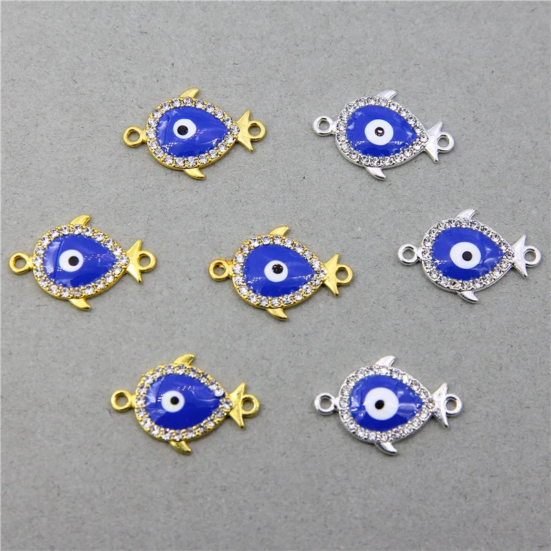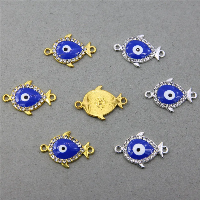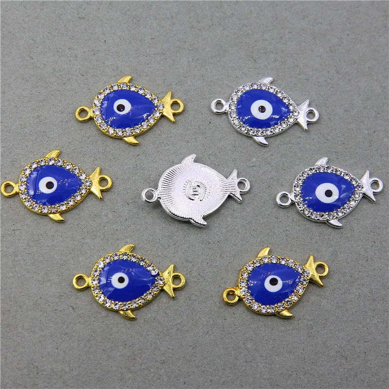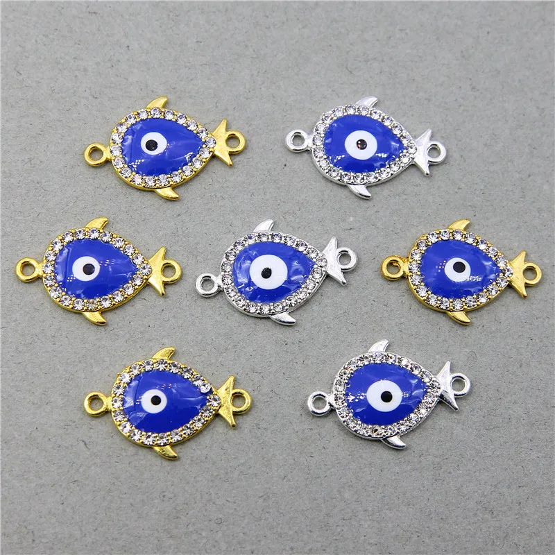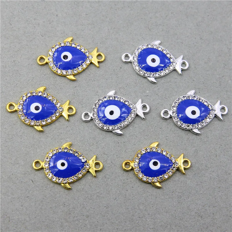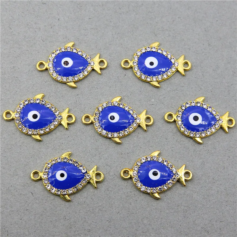 6 шт. модные золотые стразы сглаза рыбий глаз Сплав Шарм браслет соединитель женское DIY ожерелье ювелирные аксессуары