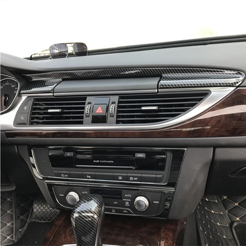 Обложка для навигации на приборной панели из углеродного волокна, черного цвета, отделка, 2 шт. для Audi A6 C7 2012-2018 LHD, модифицированный Стайлинг автомобиля из нержавеющей стали