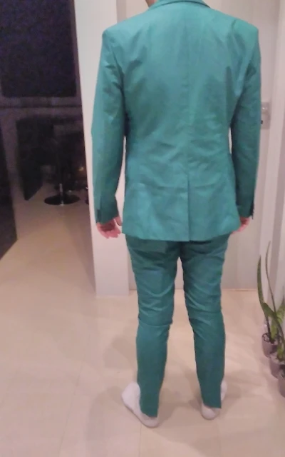 Костюм мужской темно-зеленого цвета, с лацканами на одной пуговице