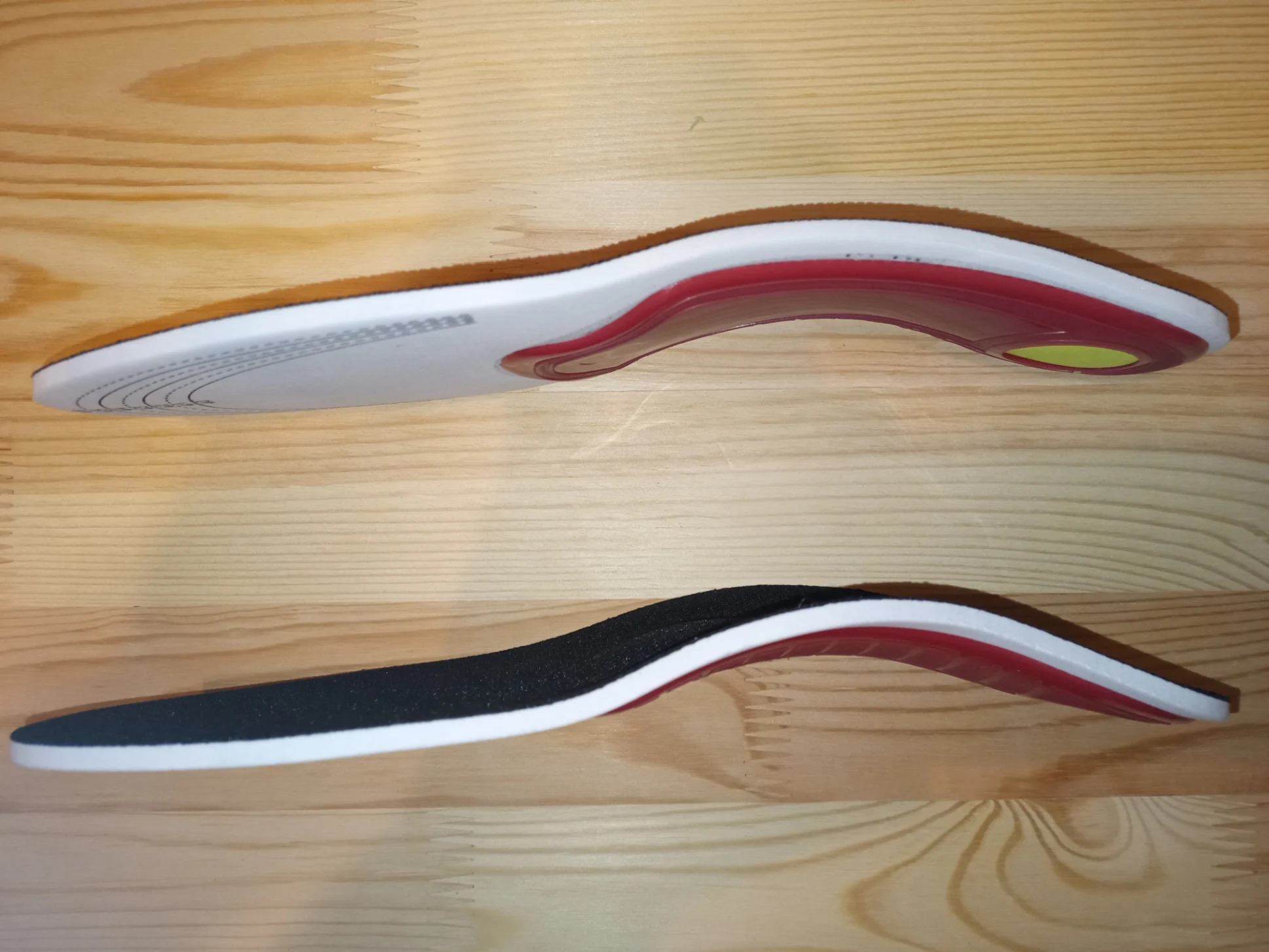 Стельки как на картинке. Посмотрим как будет в носке. Справа, купленные в ашане за почти 500 р., войлочные серые, это самые дешёвые. У ашановских кругляшок на пятке более мягкий, выпирает над пластиком. У китайских впадина. Надеюсь, что не протрутся. Купил за 238, доставка месяц.