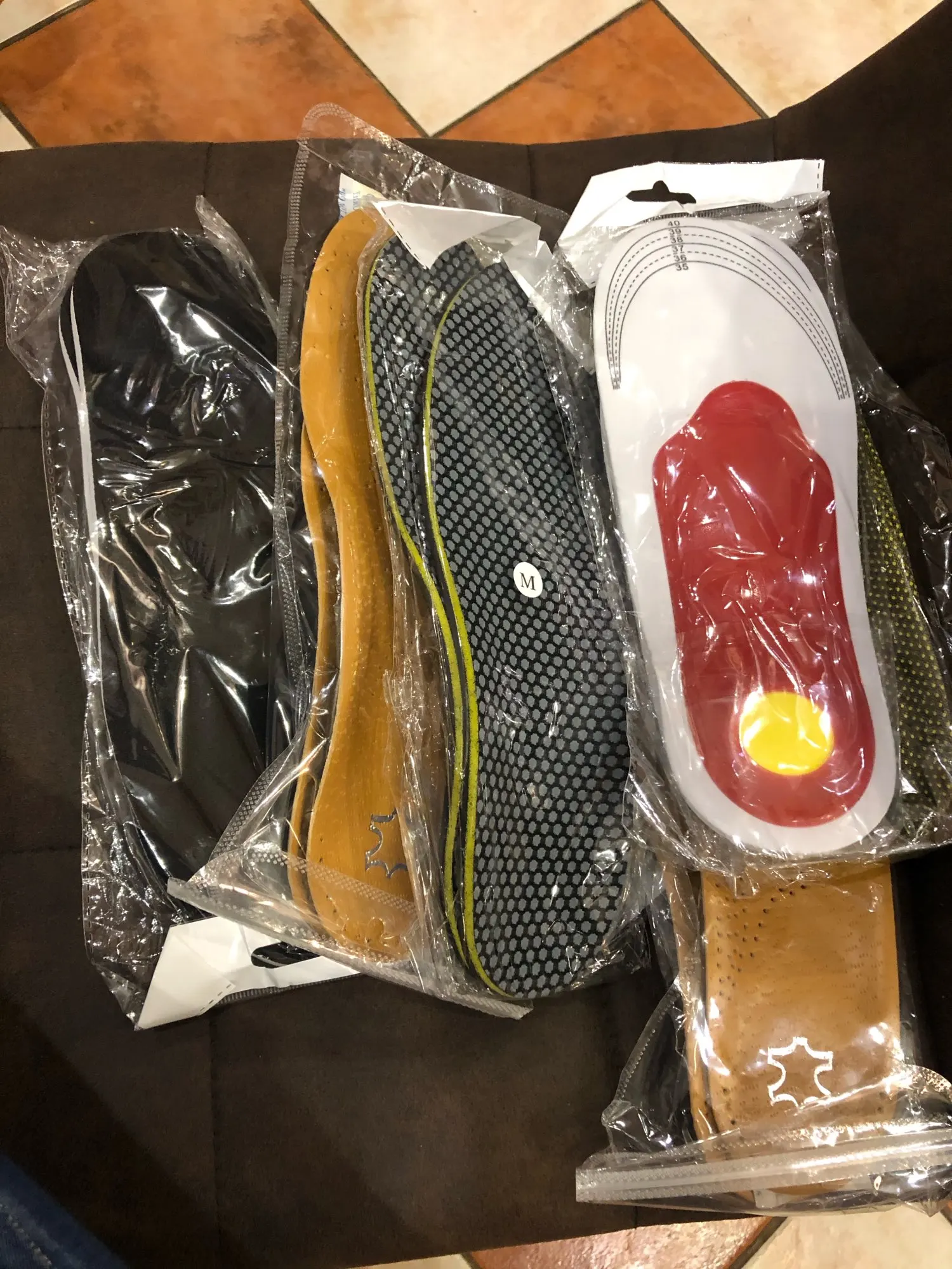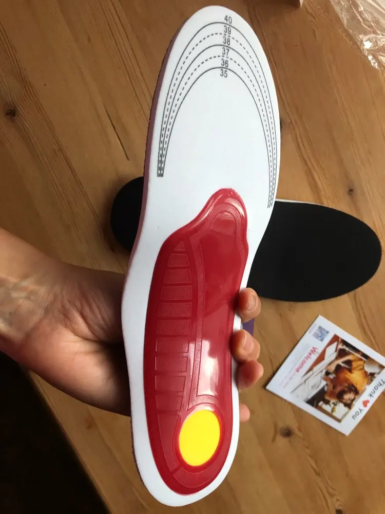 Заказала 3 вида стелек, по 2 пары, мужу и сыну. Стельки пришли за 2 недели, товар соответствует описанию. Слегка маломерят: на 43-44 российский 46 подошел без подрезки. В посылке были два подарочка: наклейки на внутренюю поверхность пяточки от натирания, очень приятно! Продавцу большое спасибо! Рекомендую!!!