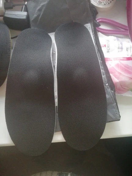 Заказала 23 ноября, получила 11 декабря на Почте России в Подмосковье. Цена — 245 рублей. Стельки необычные. Учитываю свой опыт ношения разных в течение 10 лет. Подъем высокий, да. Сами они тканевые. На ощупь есть амортизация и в пятке, и под стопой. Что хорошо. Еще не подрезала, потому что в тапки поместились и так. В промовидео прыгает девушка, только сейчас увидела в характеристиках, что стельки для мужчин. А в заголовке — для ж и м. В общем, дополню отзыв чуть позже.