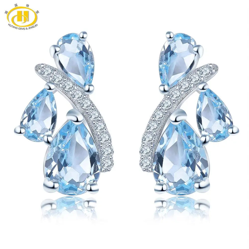 Hutang , женские серьги-гвоздики с голубым топазом, цельное серебро 925 пробы, натуральный драгоценный камень, изящные элегантные классические ювелирные изделия для личного использования