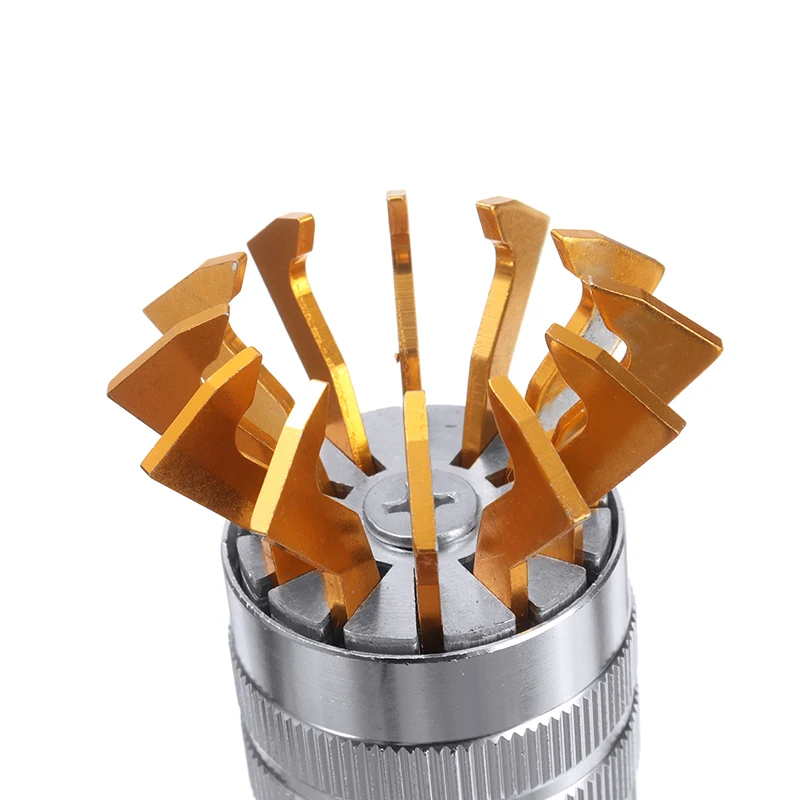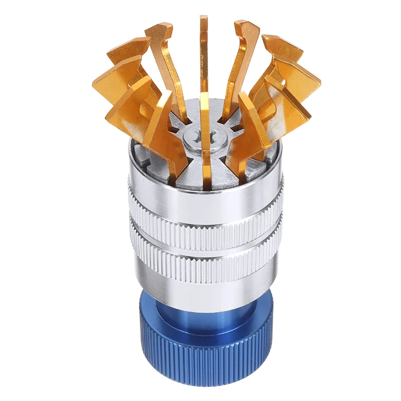 Челюсти на этом инструменте зажимаются на акриловом/пластиковом кристалле для часов и слегка сжимают края, позволяя кристаллу просто снимать часы.
