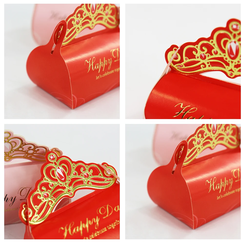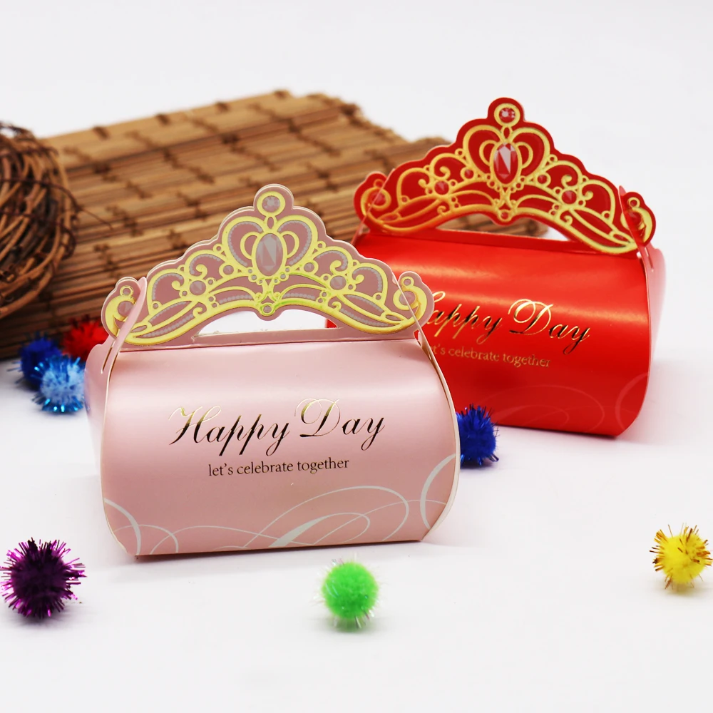Коробка для конфет, 10 шт.лот, с бронзовой короной, для свадьбы Вечерние дня рождения, помолвки, коробка для конфет, подарочная упаковка для шоколада