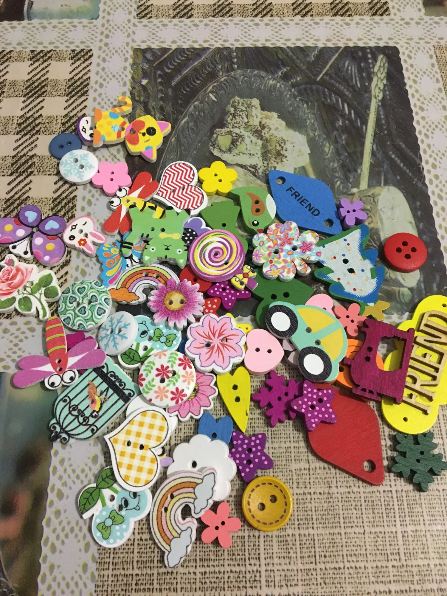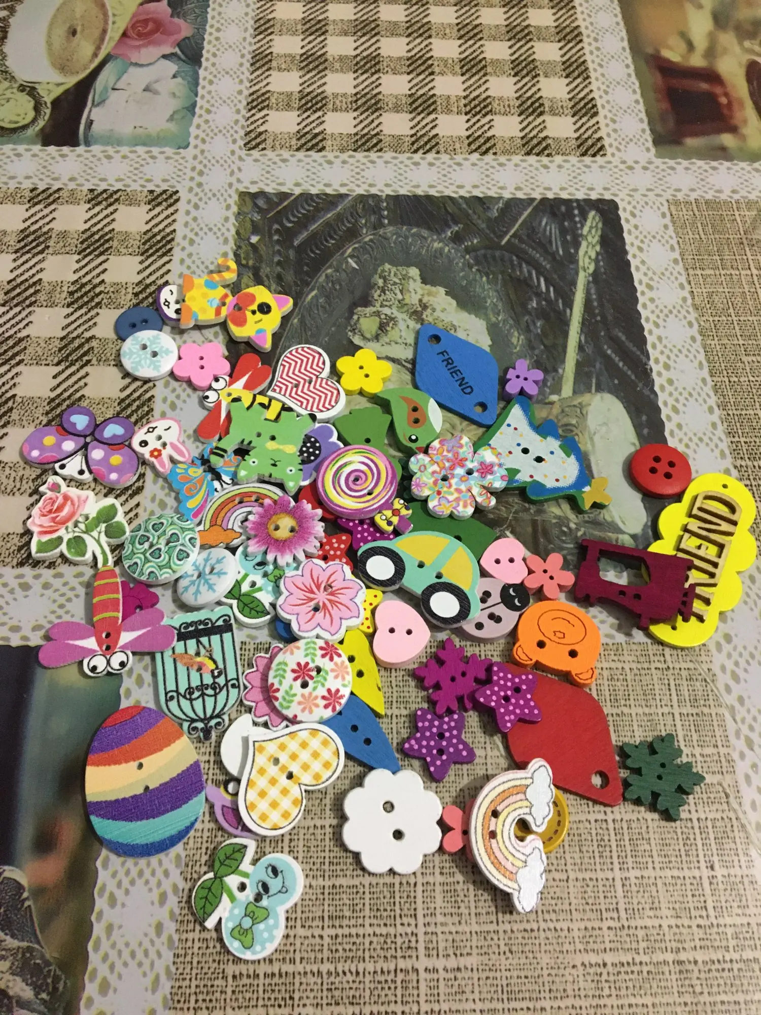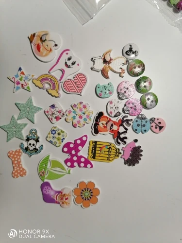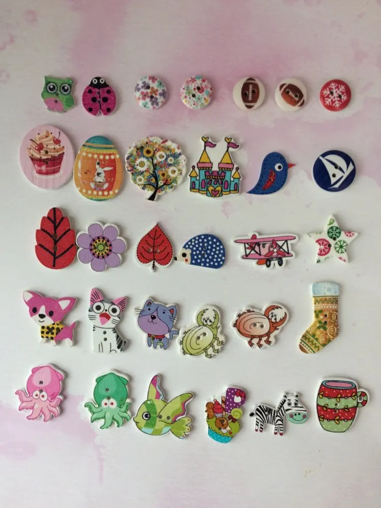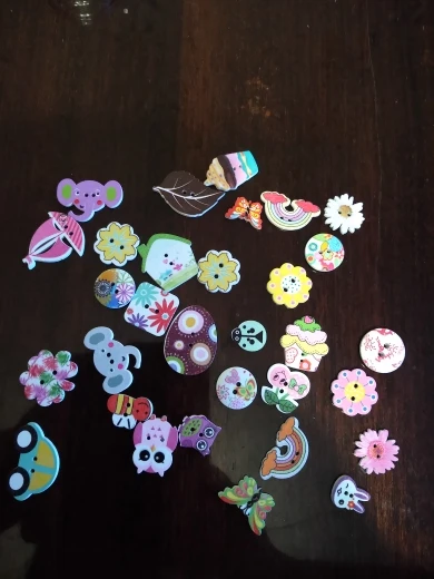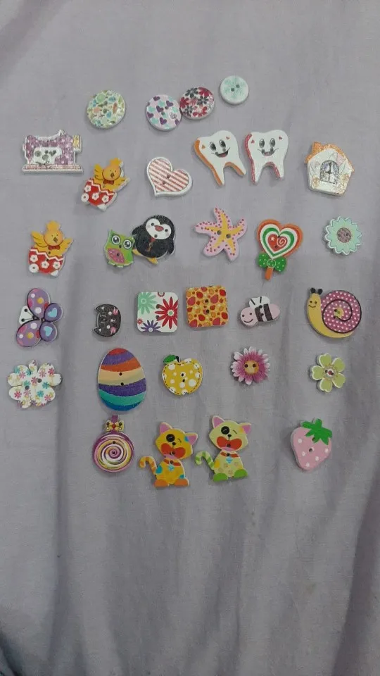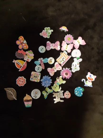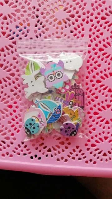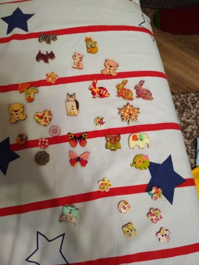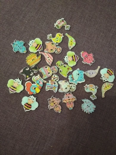 На некоторых пуговках плохая полиграфия, расплывчатая картинка. По ассортименту есть и повторы и однотипы, при чем не очень красивые. Я ожидала лучшего.