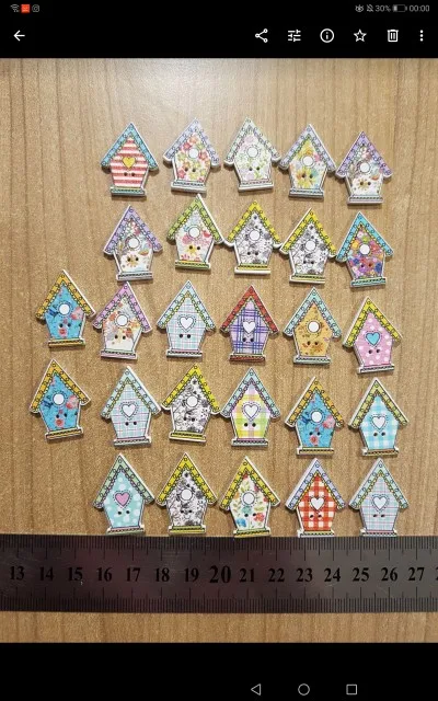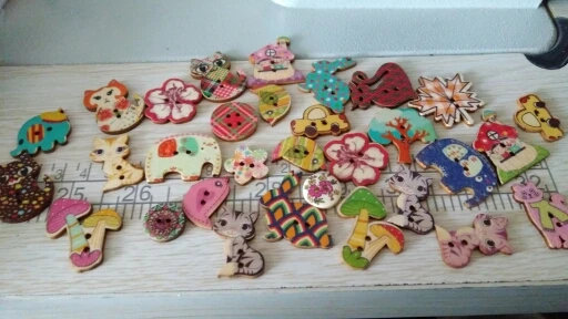 хорошие деревянные пуговки,прокрашено хорошо ,пришли разного размера,понравились.Примерно штук 30( сейчас уже не помню).