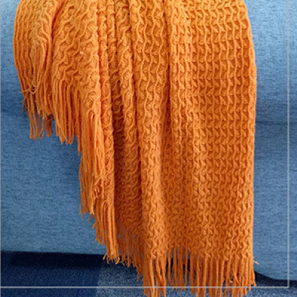 Оранжевый плед в скандинавском стиле одеяла с кисточками Одного Переплетения сетчатый плед-чехол для дивана ковер покрывало в клетку одеяло 130x170cm