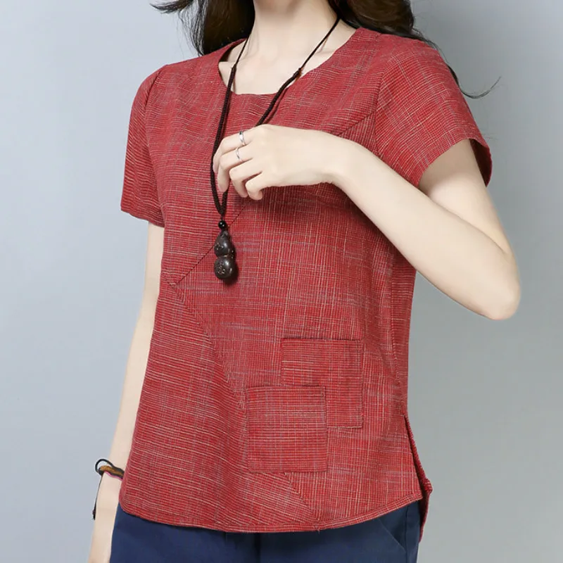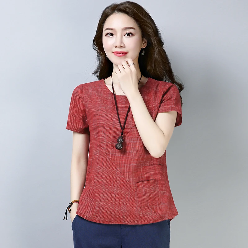 Женская летняя обувь в винтажном стиле Льняные и Хлопковые женские топы и блузки с короткими рукавами для женщин футболки размера плюс, женская одежда, блузки и рубашки, 2127