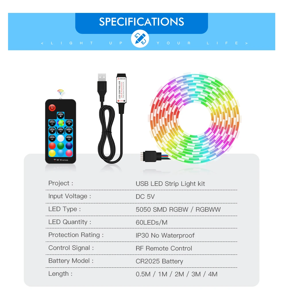 USB Светодиодная лента RGBW RGBWW 5050 SMD, гибкая светодиодная лента для HD ТВ, фонового освещения, подсветки телевизора, 50 см, 1 м, 2 м, 3 м, 4 м