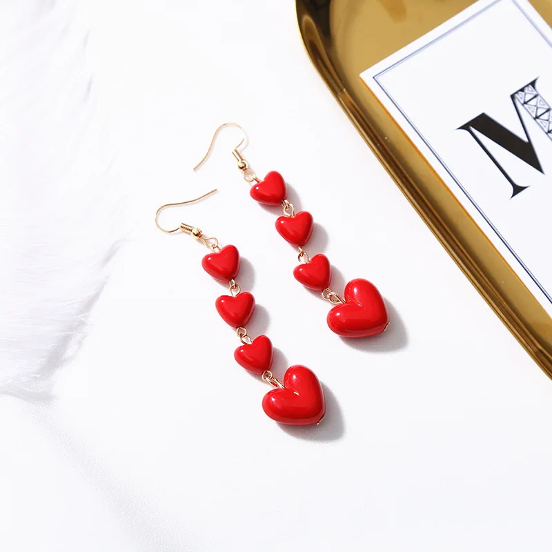 Серьги-подвески женские, с красным персиковым сердечком, в Корейском стиле, симпатичная подвеска-сердце