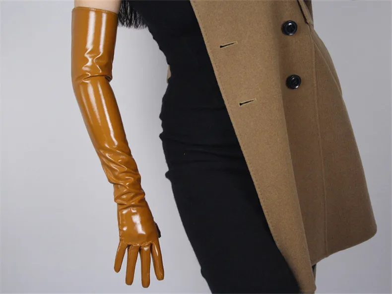 60 см Лакированная кожа длинные перчатки PU тканевые чехлы для сидений из искусственного кожаные Яркие Кожаные Стикеры зеркало сапфир, темно-синий, темно-синий, Женский WPU02-60