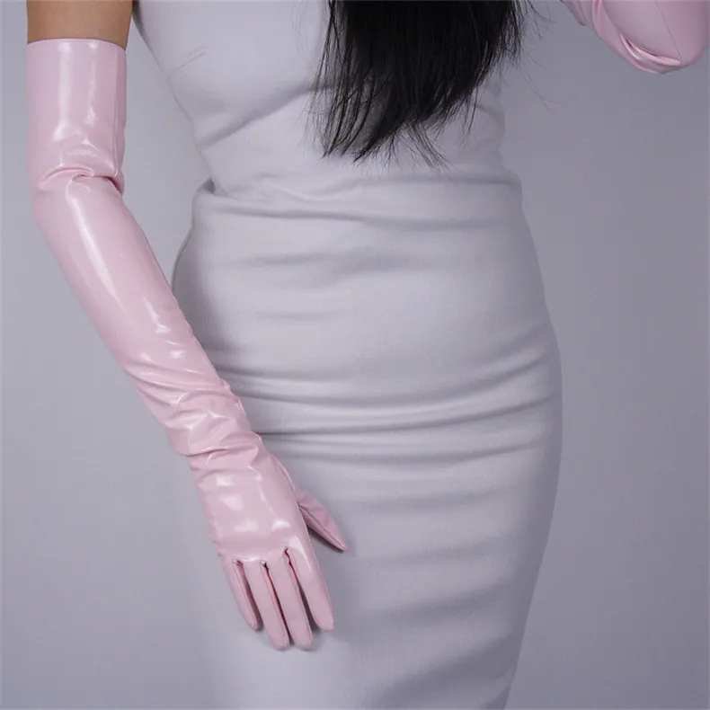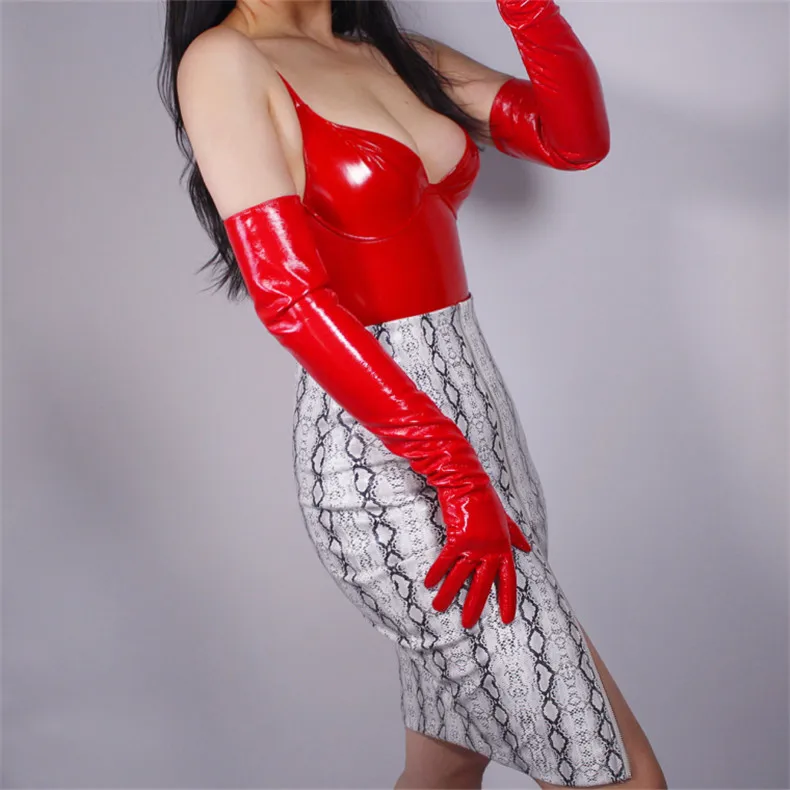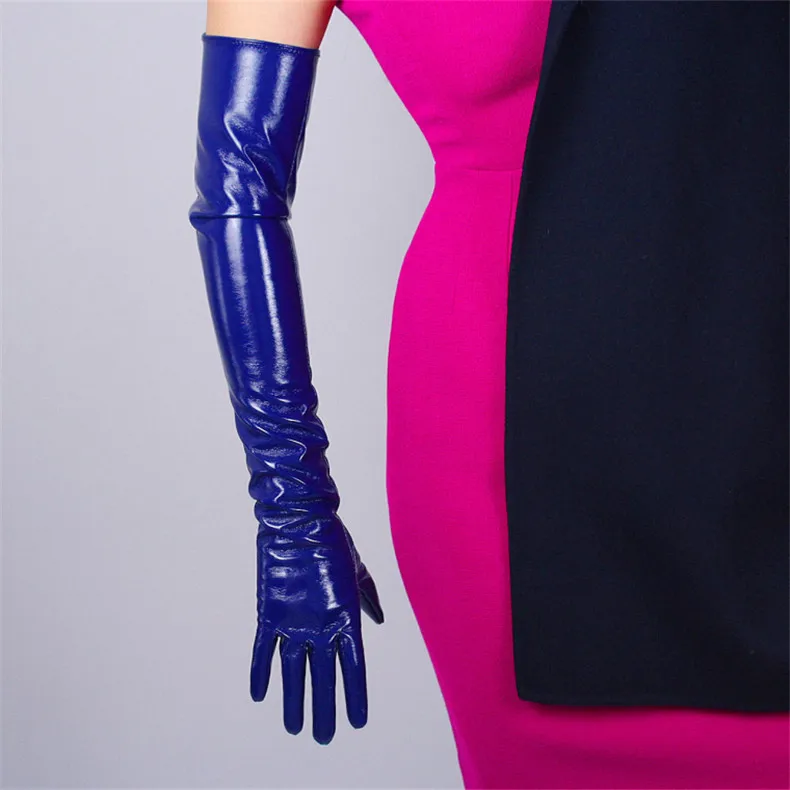 60 см, длинные перчатки из лакированной кожи, искусственная кожа, Яркие Кожаные наклейки, зеркальные, сапфировые, синие, темно-синие, женские WPU02-60