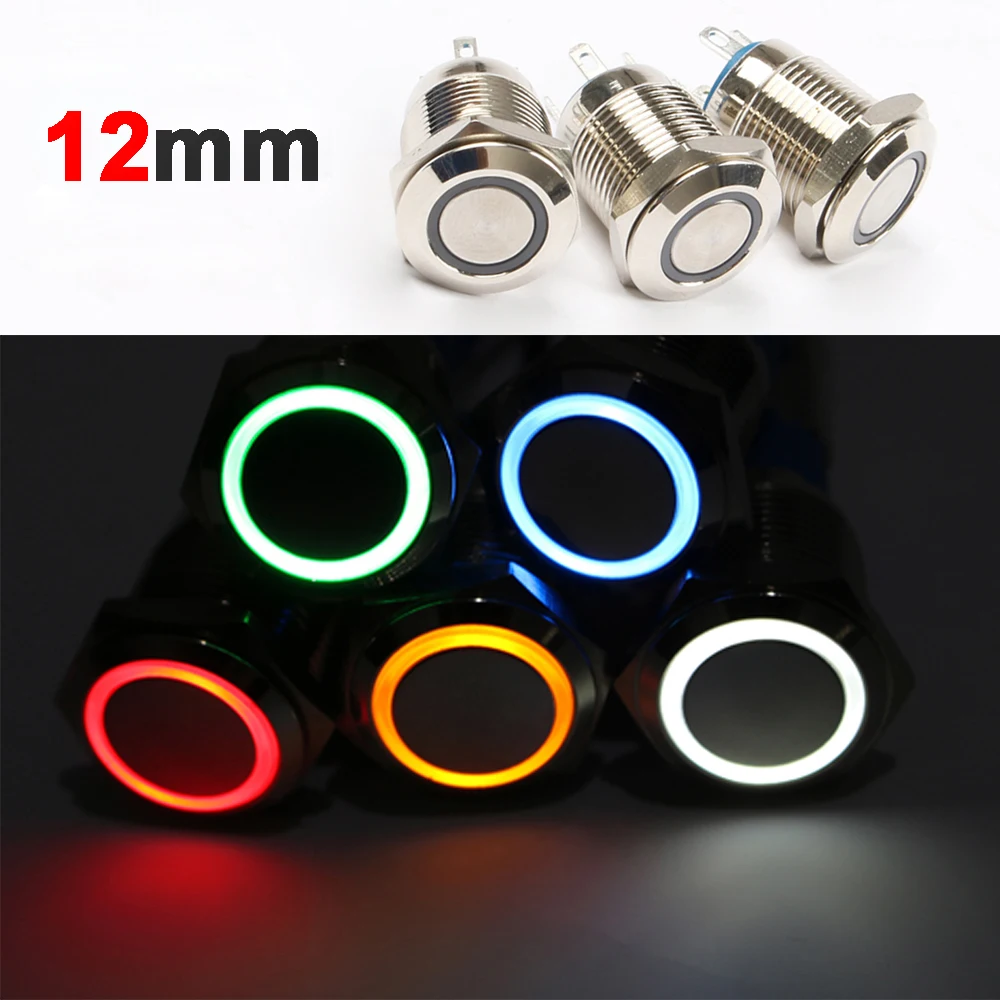 12 мм Плоская Круглая Головка водонепроницаемый выключатель без фиксации металлический кнопочный переключатель светодиодный светильник автомобильный рожок автоматические переключатели мощность самовосстановление