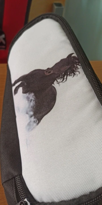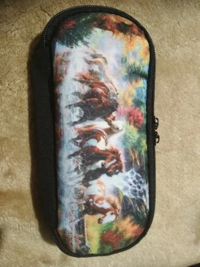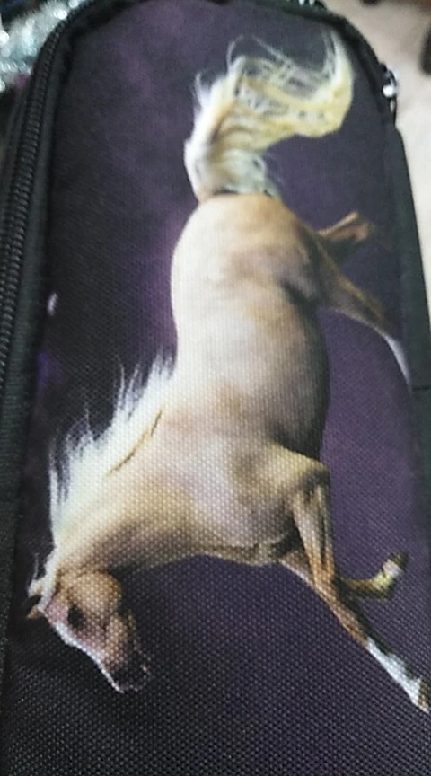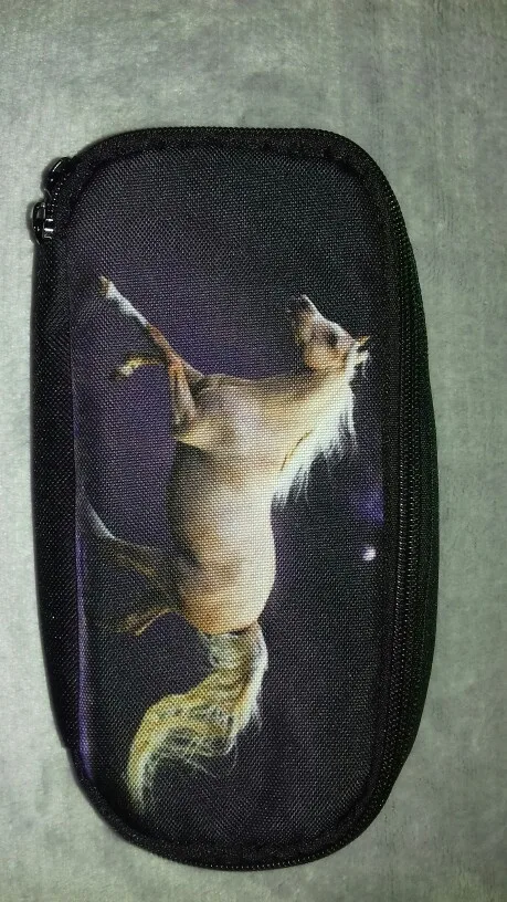 Обычный тряпочный пенал. Лошадка яркая. Много в него не влезет