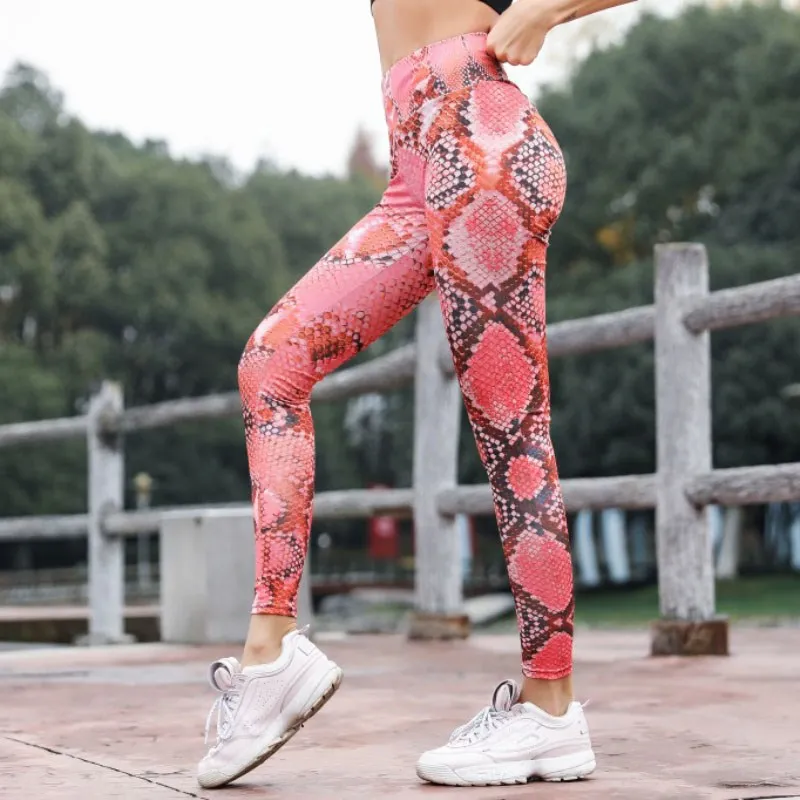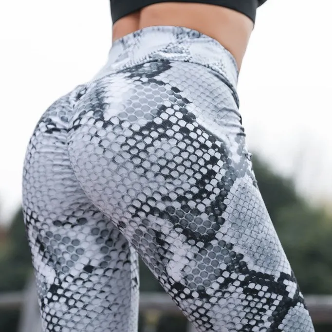 Спортивные женские Леггинсы пуш-ап с высокой талией и змеиным принтом