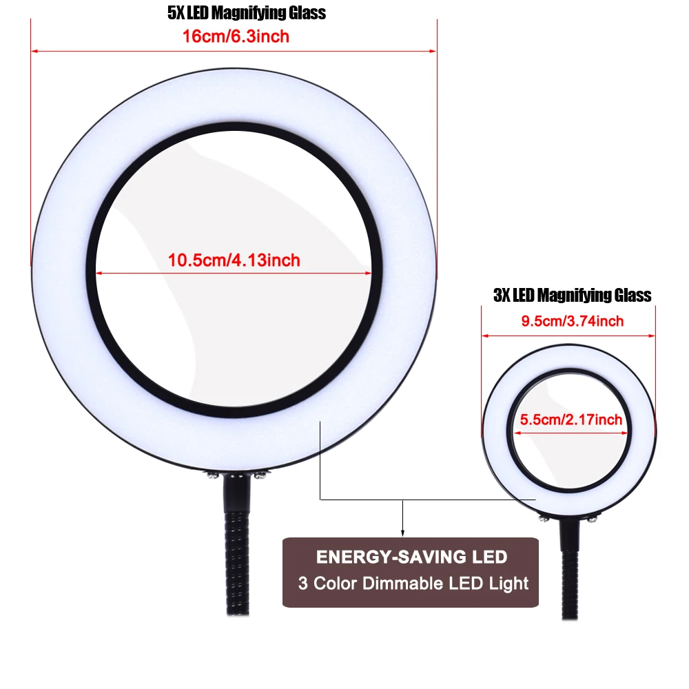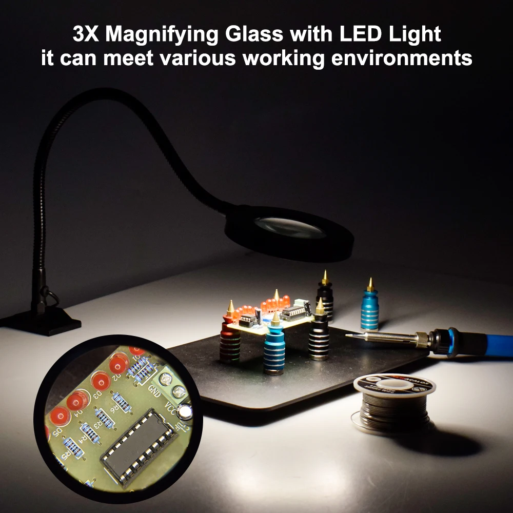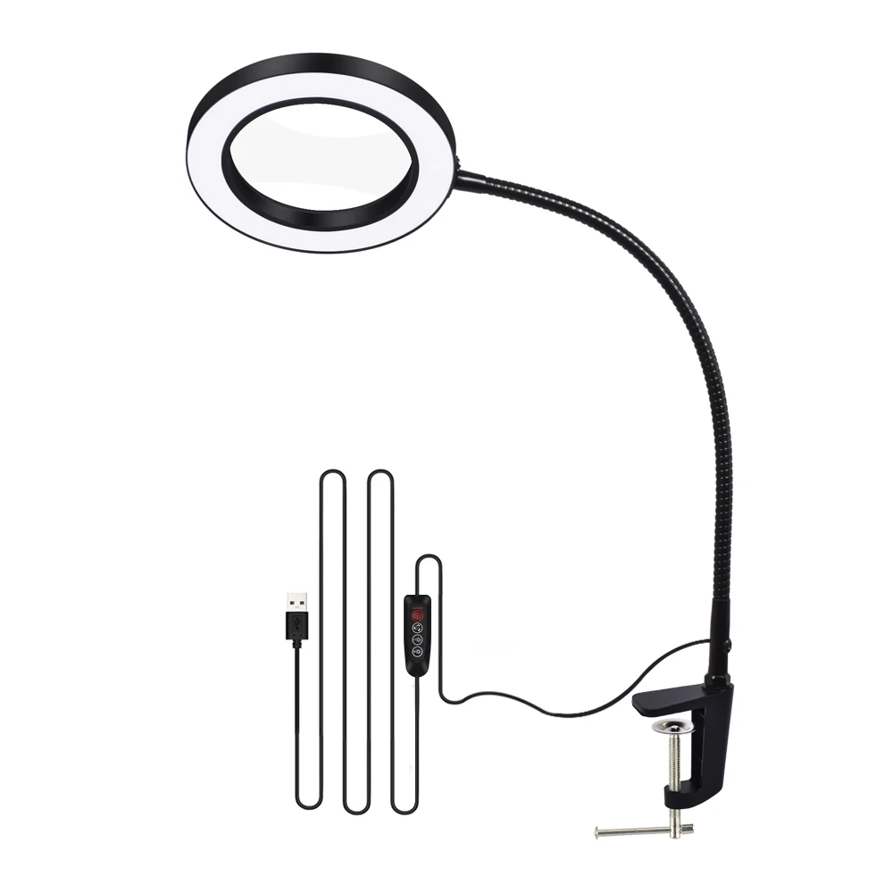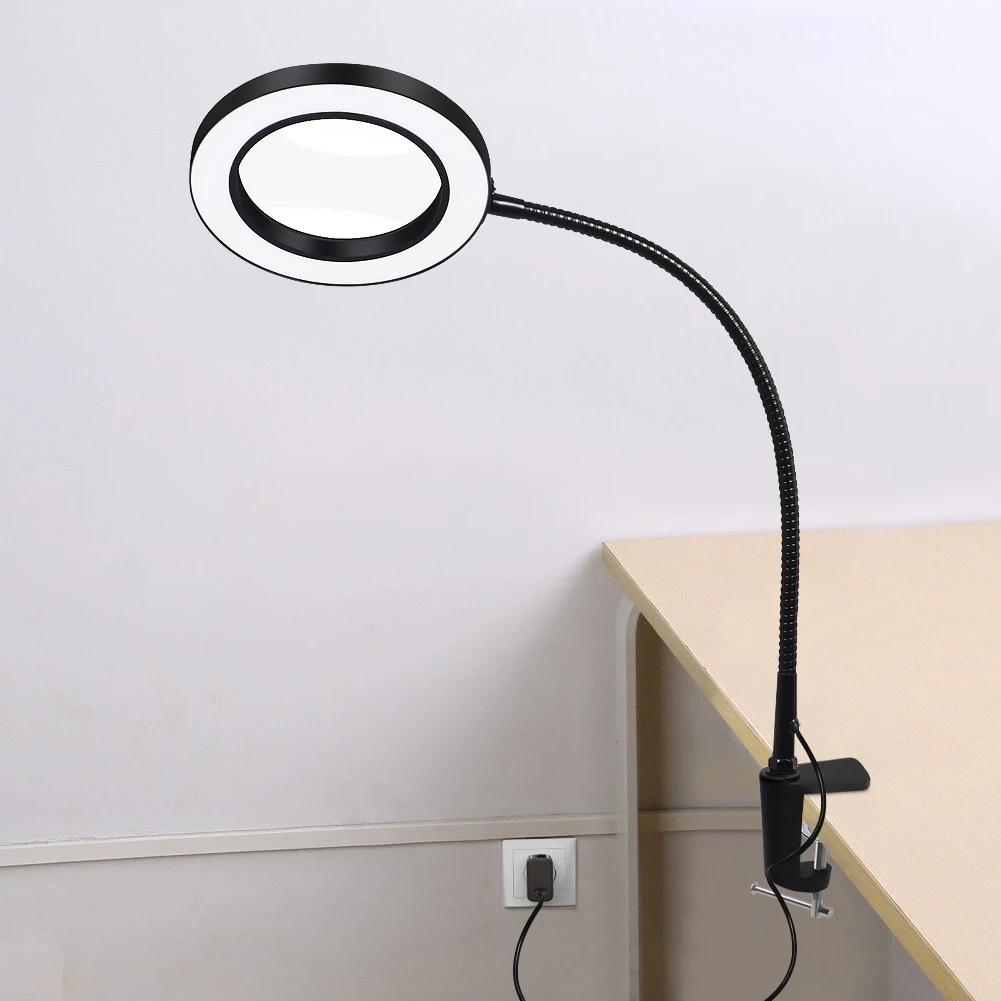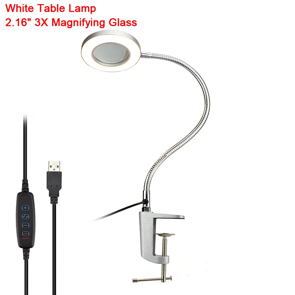 NEWACALOX USB 3X5X Увеличительное Стекло Настольная Зажимная Лупа с светодиодный светильник Гибкая Настольная лампа для чтения Рабочая сварочная работа