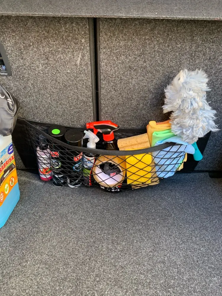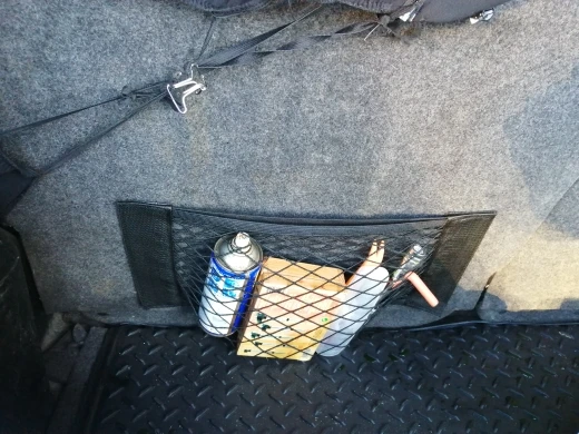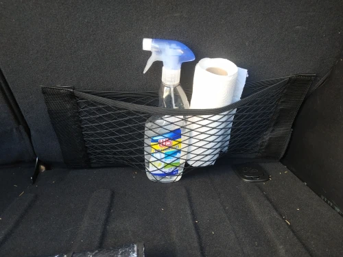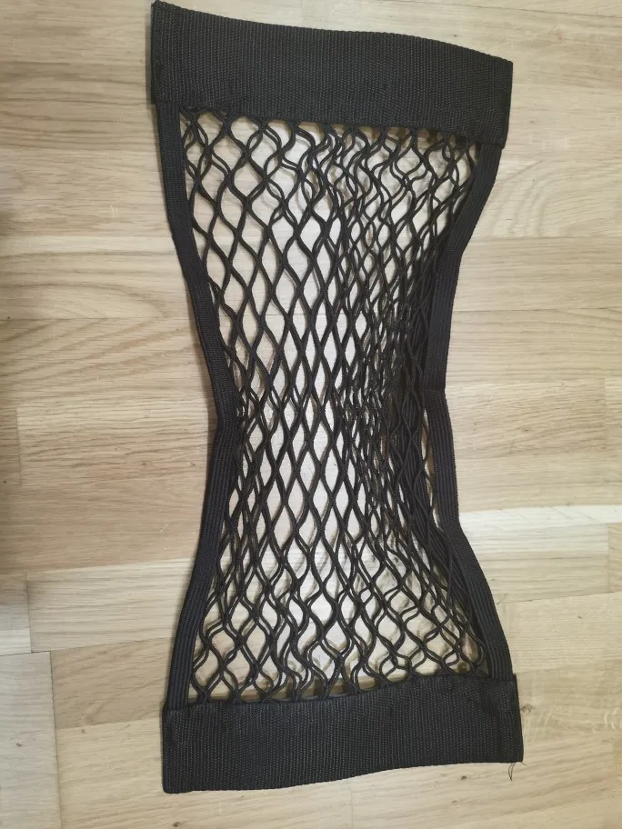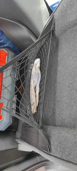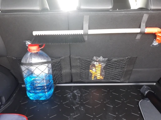. Надо было подлиннее брать. Сетка хорошего качества. Липучки держат баклагу с омывайкой и огнетушитель. Рекомендую