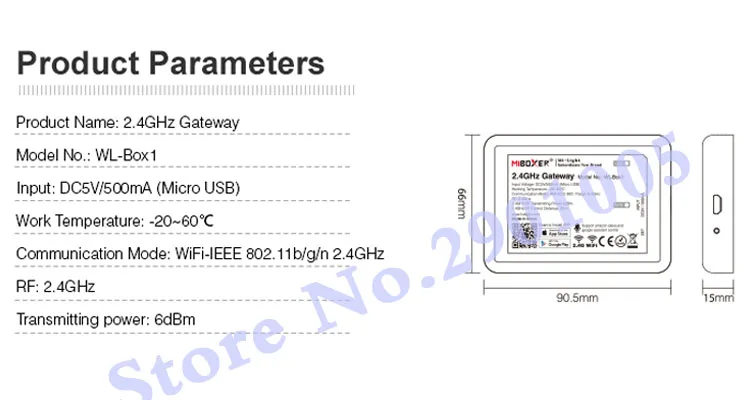 Особенности: 2,4 ГГц шлюз контроллер Wi-Fi