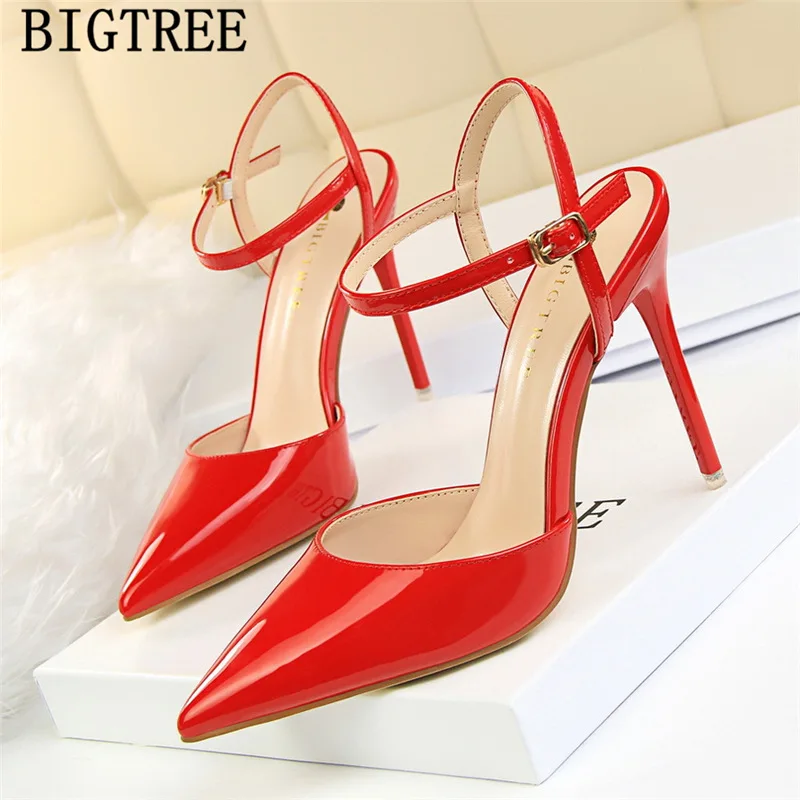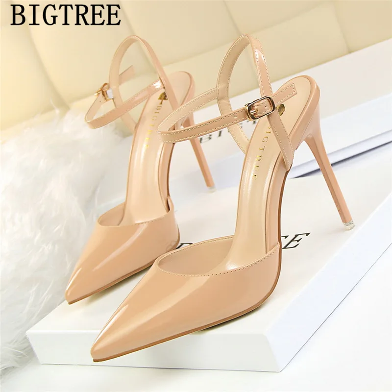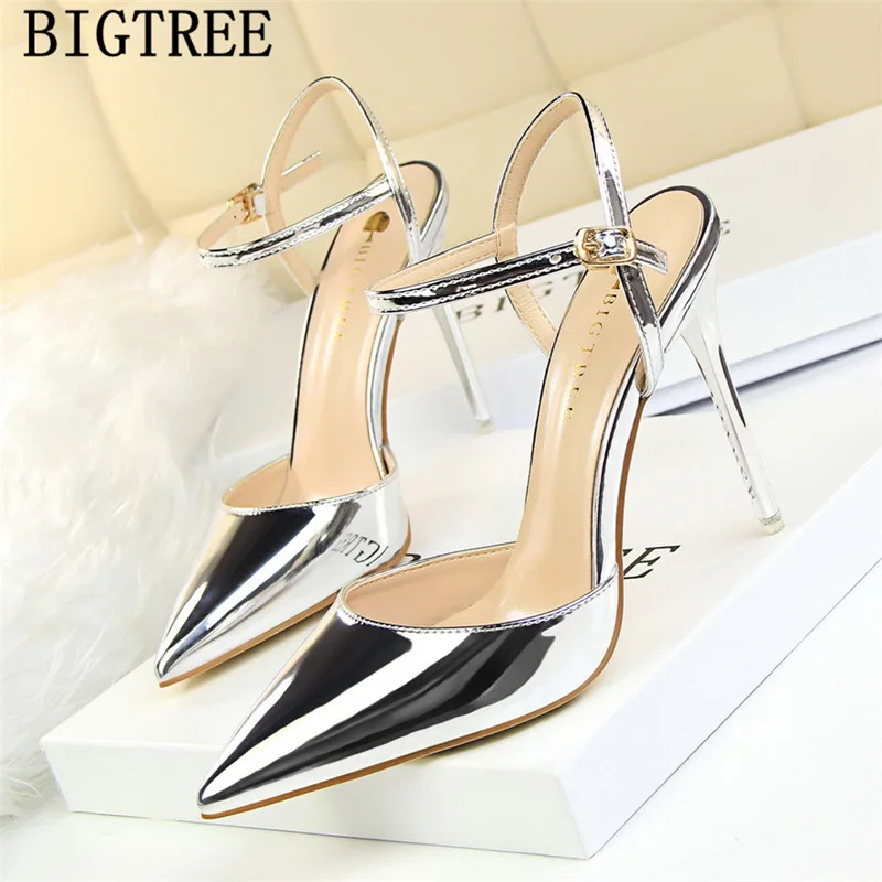 Туфли женские Bigtree, лакированная кожа, высокий каблук, пикантные, золотистые