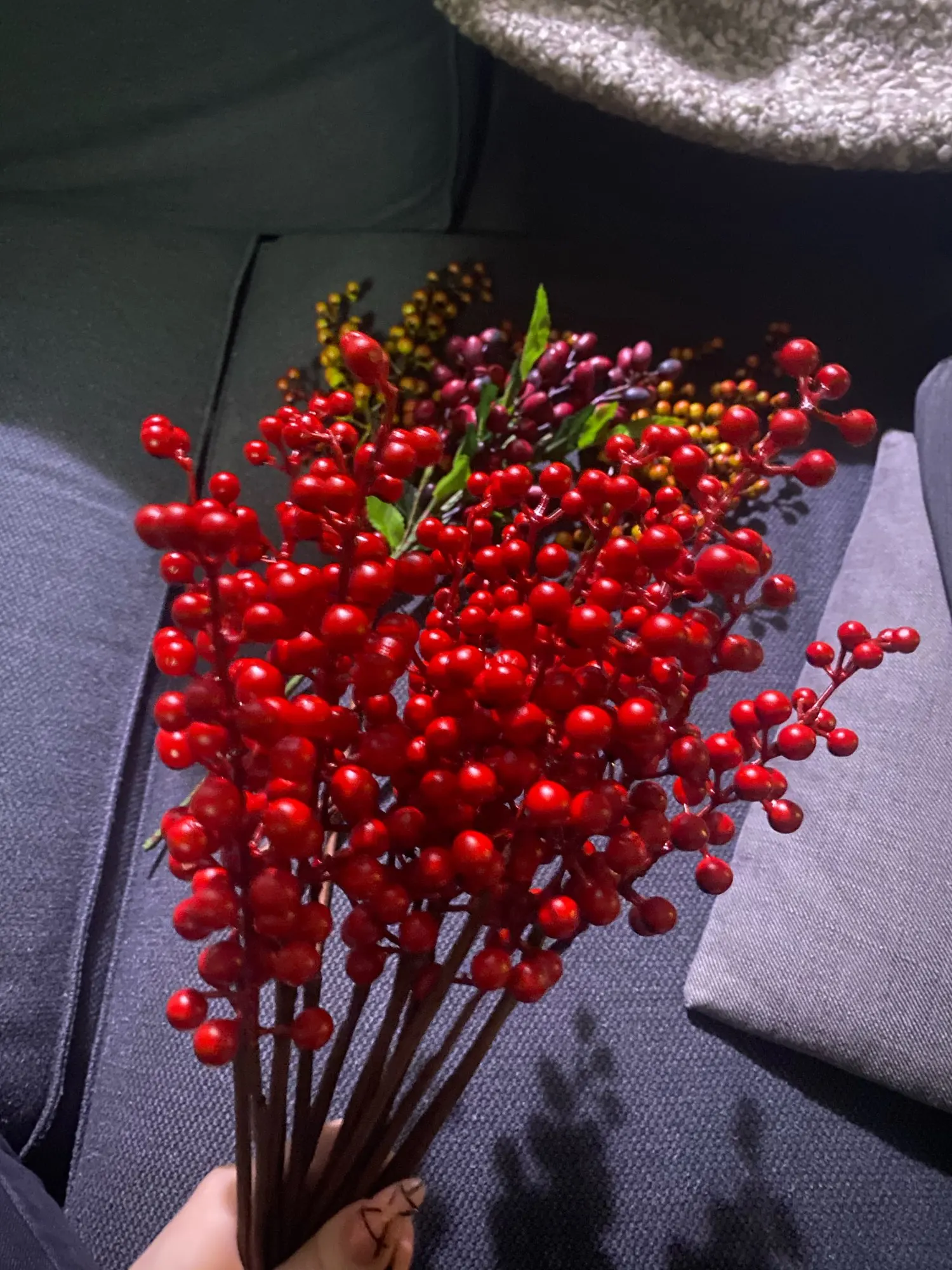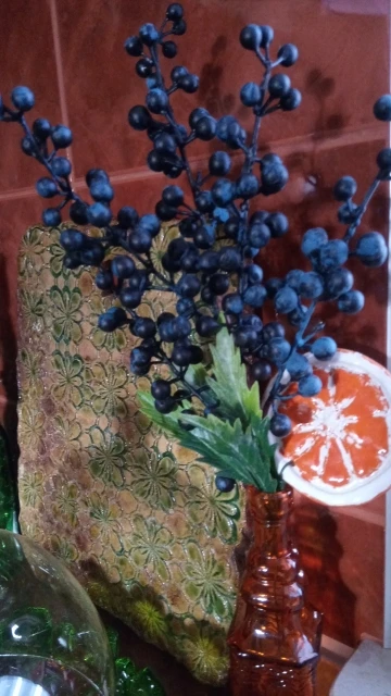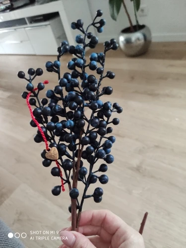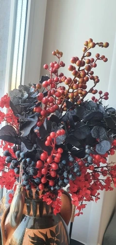 Товар прибыл в ожидаемое время и соответствует картинке и описанию. В целом хорошо и подходит к вазе, которую я выбираю. Это удовлетворило мои ожидания. Я не ставлю 5 звезд, потому что ягоды поро окрашены, и вы можете увидеть более темное место из-за того, что краска капает, что не очень приятно.