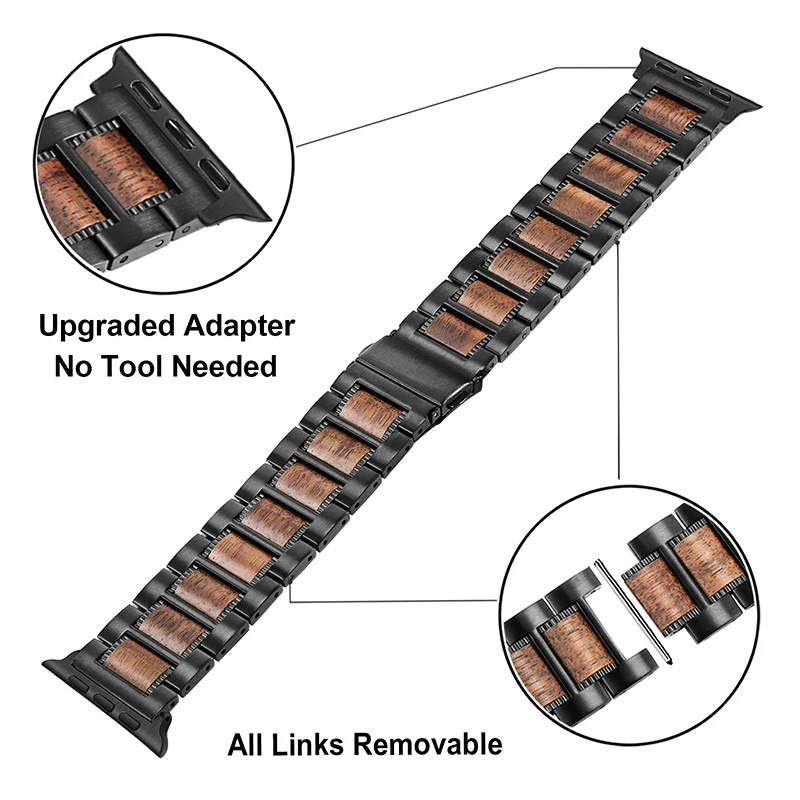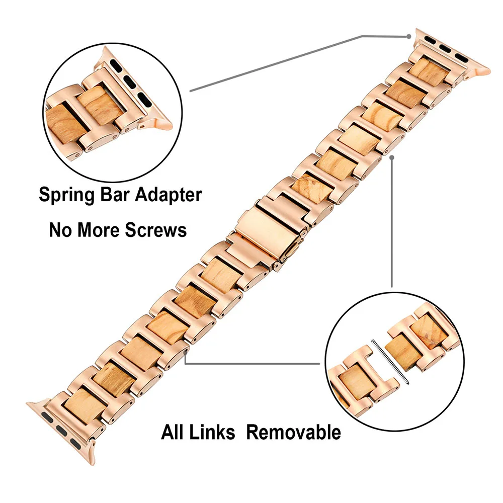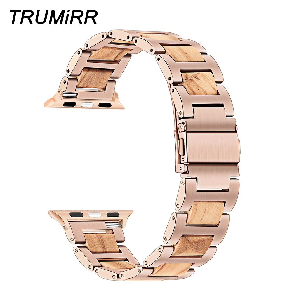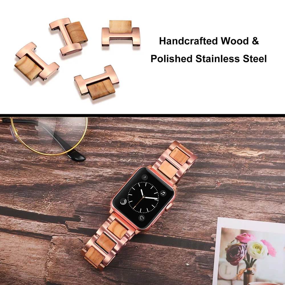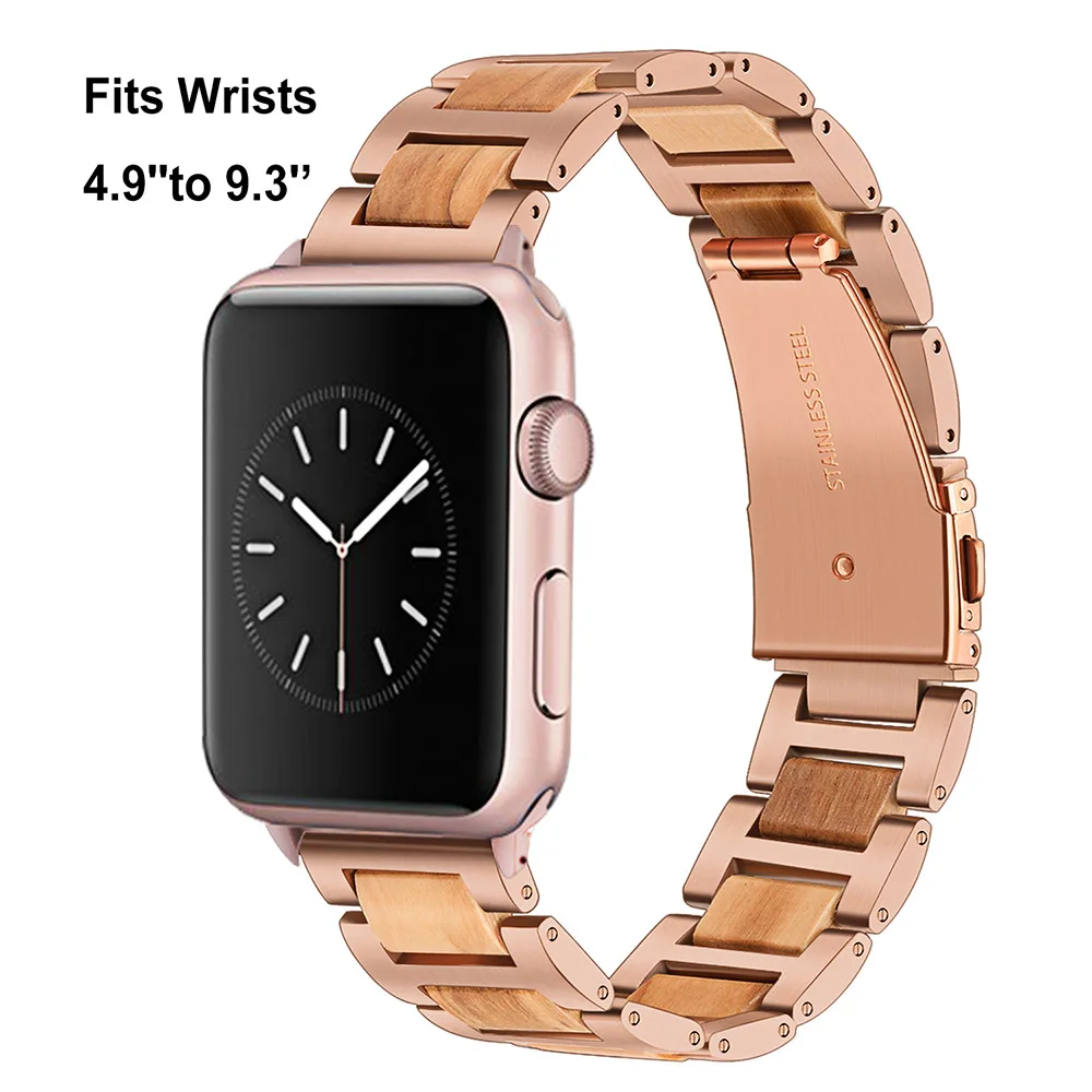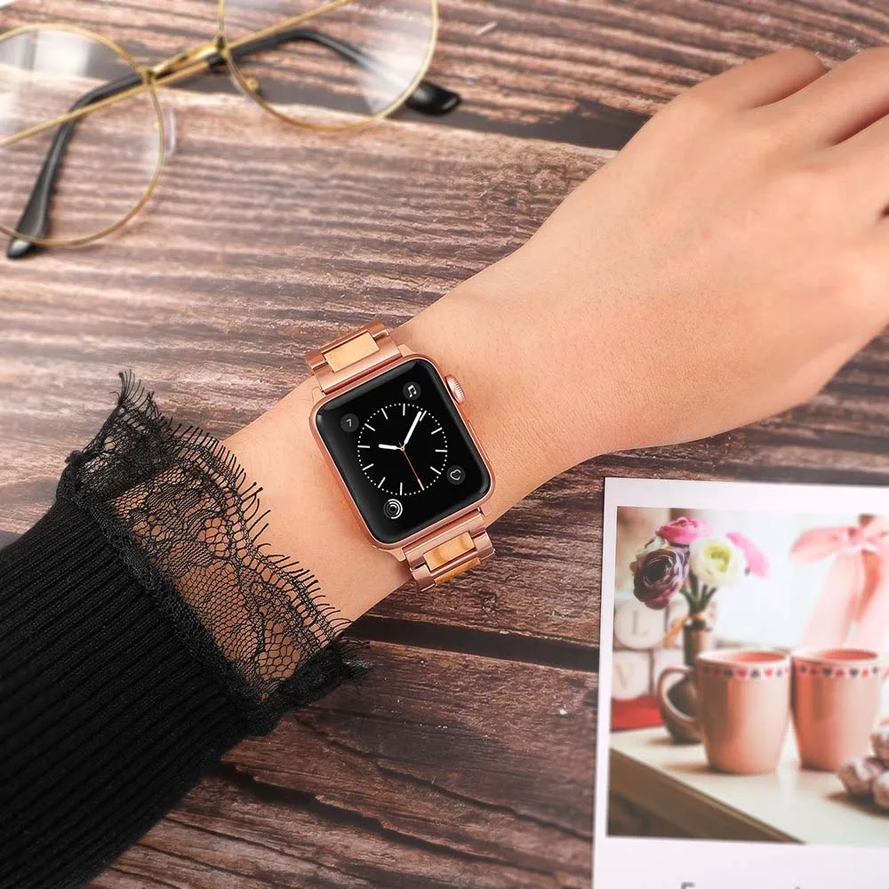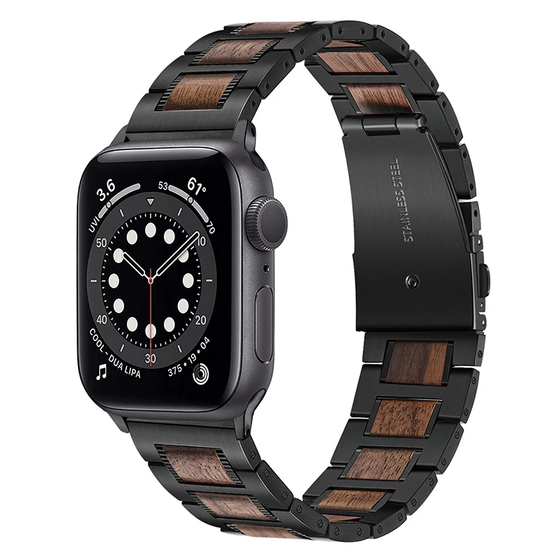Ремешок из нержавеющей стали и дерева для iWatch Apple Watch SE Series 7 6 5 4 3 2 1 45 мм 44 мм 42 мм 41 мм 40 мм 38 мм