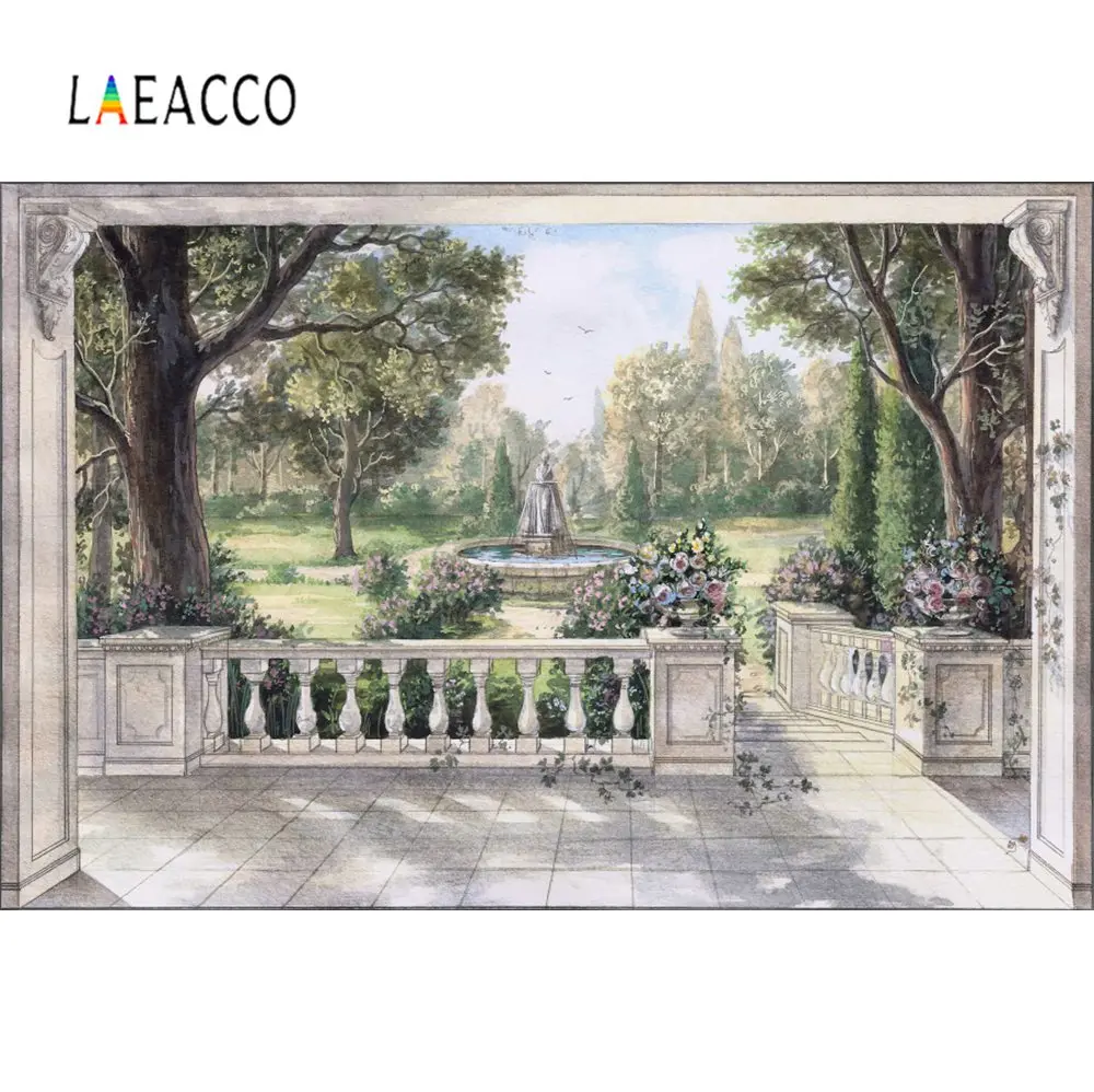 Laeacco масляная живопись Весенний сад цветок трава парк деревьев живописные фото Фон фотографии фотосессия Фотостудия