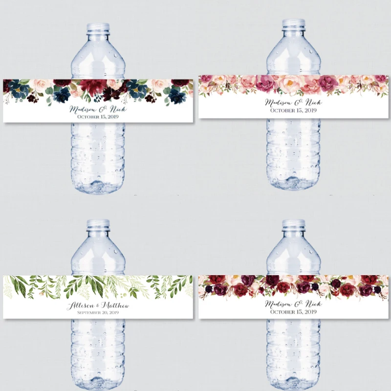 24 шт., индивидуальные цветочные свадебные наклейки на бутылки для воды, наклейки на день рождения, юбилей, не водонепроницаемые