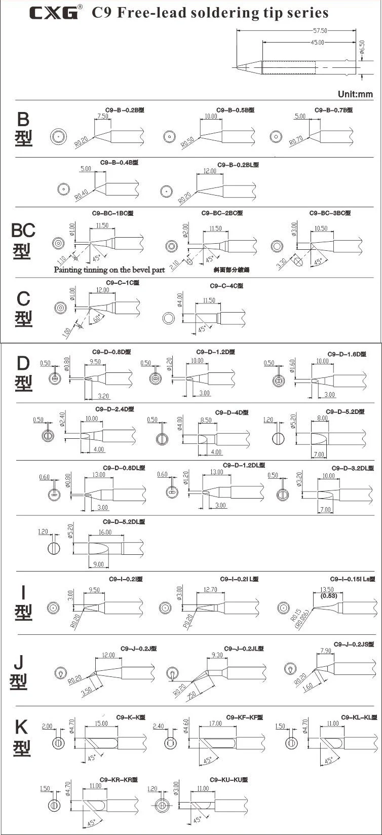 Наконечники для паяльника CXG C9 серия для C60W DS60S DS90S DS110S K3 серизованные бессвинцовые насадки для паяльника