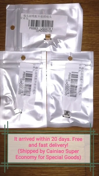 It arrived within 20 days. Free and fast delivery! (Shipped by Shipped by Cainiao Super Economy for Special Goods) Magnetic attaches quickly. Good quality. "10 generation" of other manufacturers that were compatible are 【CANDYEIC Official Store】 【CANDYEIC Global Store】 【CELBRO】【USLION】 【Yelecnologia Global Store】. Mutual usabled with these magnetic cables, magnetic adapters, and magnetic plugs. I think this is the cheapest "10 generation" magnetic Micro plug available. I am satisfied with the product, delivery and the seller.Thank you!