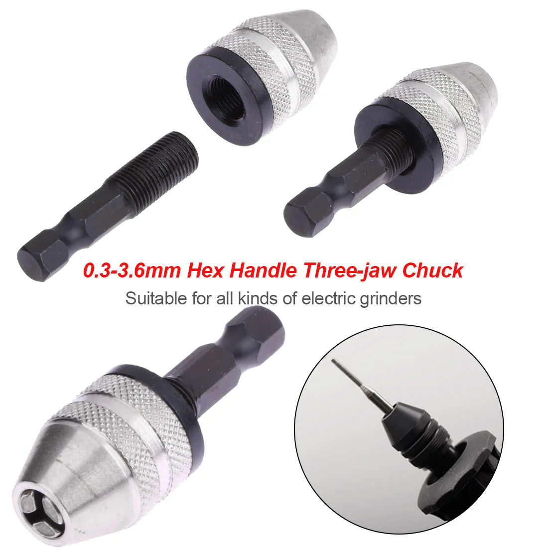 Конверсионный трехкулачковый патрон 0,3-3,6 мм с шестигранным хвостовиком, мини-зажим для сверления 1 шт., патрон без ключа, отвертка, адаптер ударного драйвера