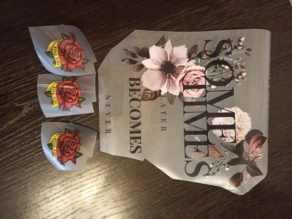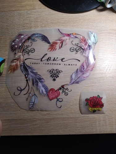 Наклейка пришла очень быстро, рисунок четкий, качество супер,переводится утюгом очень легко ,я рекомендую,продавец положил подарок розочку, спасибо большое .