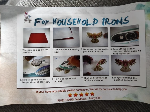 Как дизайн, качественные железные нашивки, которые делают одежду более красивой или прохладной. Упаковано с осторожностью, без повреждений, красивые цвета. Второй раз покупаю в этом магазине и уверен, что не последний. Доставка в Словению занимает не более 3 недель. Я рекомендую.