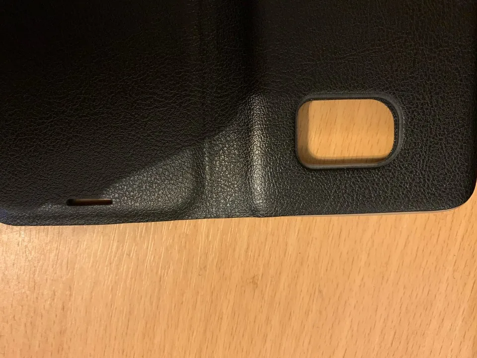 Чехол уж точно не оригинальный. Первое, что бросается в глаза-это текстура "кожи", крупный рисунок, который поход со стороны на дешевый кошелек. Внутри покрытие весьма интересное, но по ощущению могу сказать, что пыль и мелкий ворс к ней будет прилипать хорошо! Верхнюю крышку зачем-то сделали больше, со стороны громкости значительно выпирают за границы рамки, на 2-3 мм, ЗАЧЕМ! Пластиковые бортики весьма тонкие по сравнению с оригиналом, но вроде держатся. Очень расстроился, что при закрытии крышки экран телефона не гаснет!
