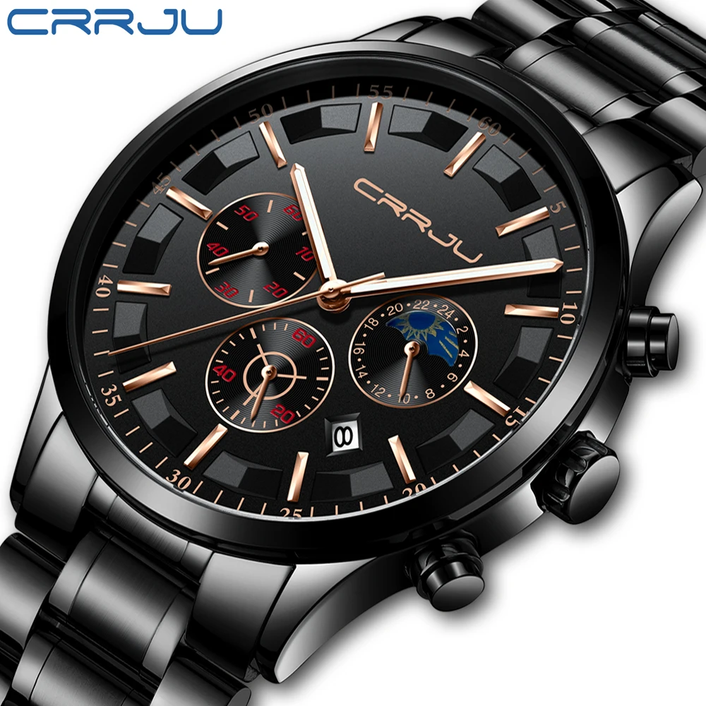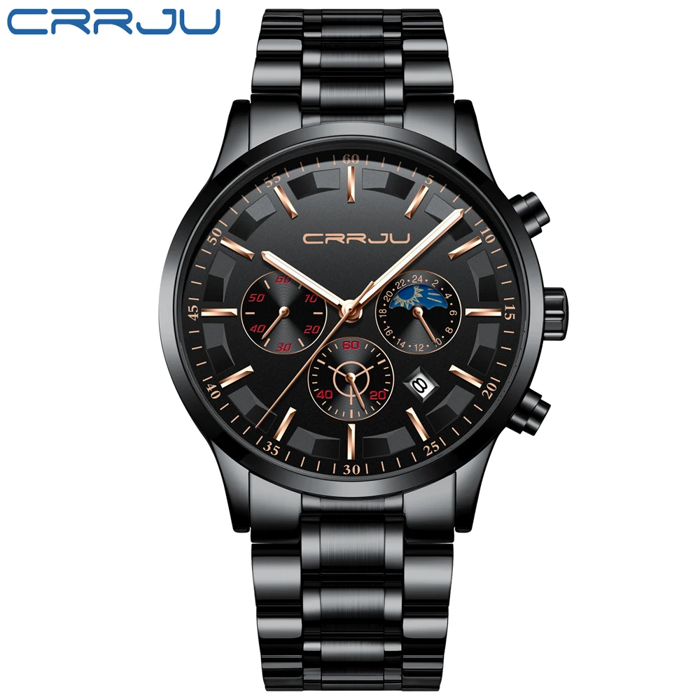 CRRJU мужские часы лучший бренд класса люкс модные деловые кварцевые часы мужские спортивные полностью стальные водонепроницаемые черные часы Relogio Masculino