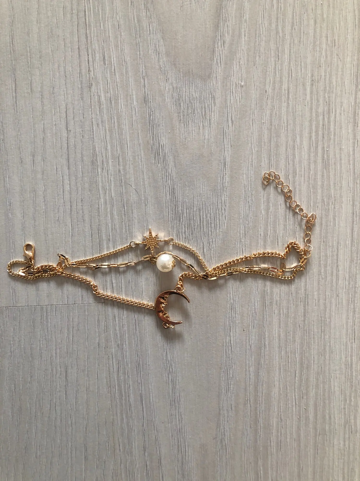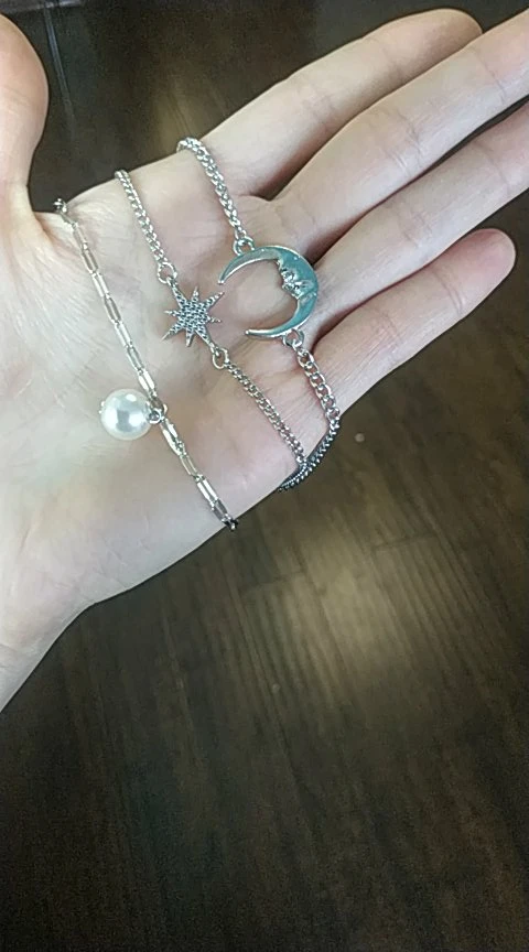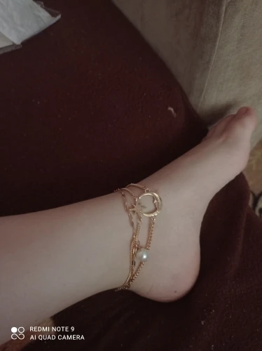 жемчужина была сломана. на ноге смотрится хуже чем на фото продавца..все три цепочки висят на одном уровне, все в кучу, поскольку одинаковой длинны.