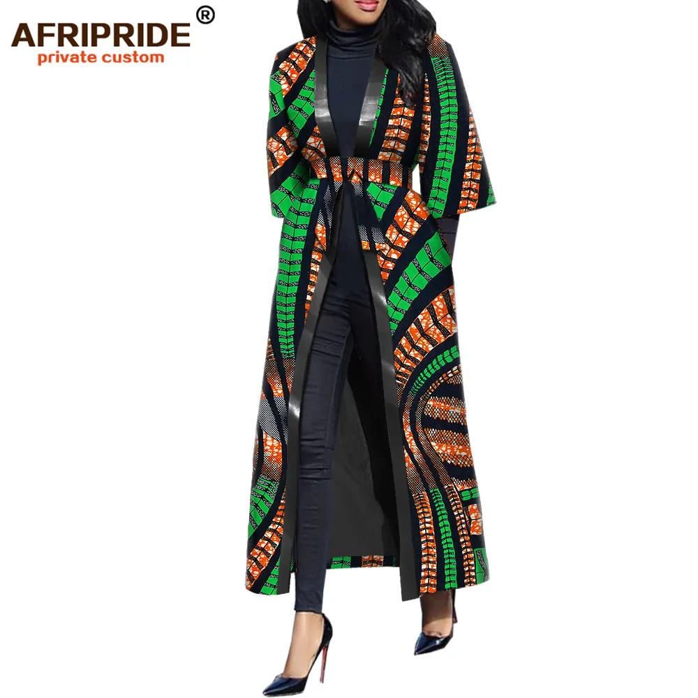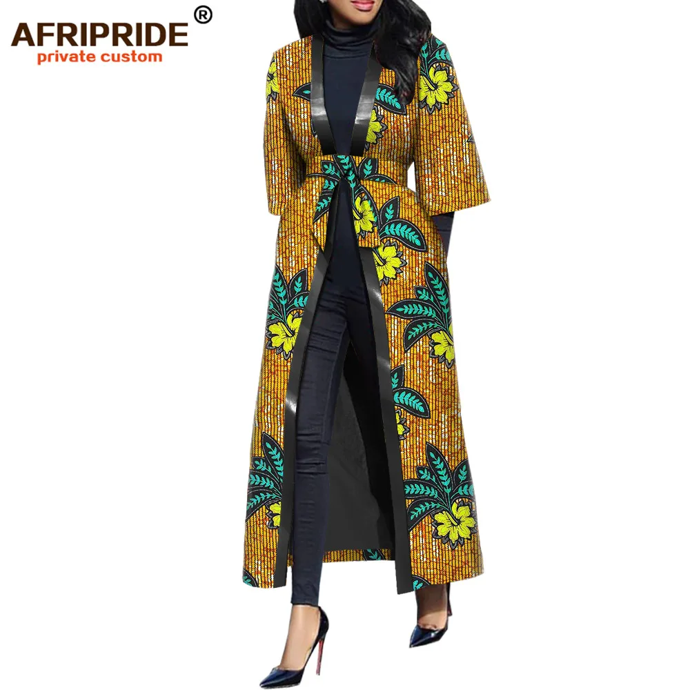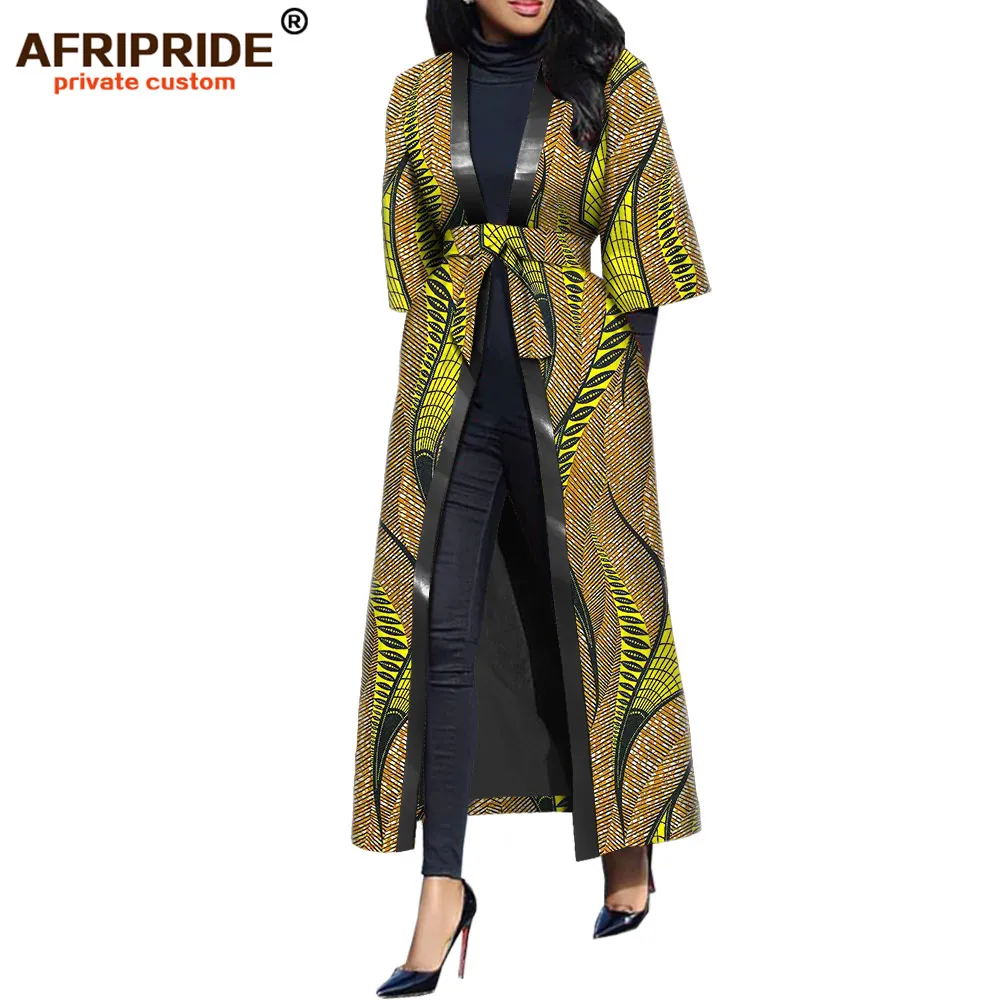 Новое поступление 2019 года, повседневное женское Африканское вощеное пальто AFRIPRIDE с рукавом три четверти, длиной до щиколотки, Женское пальто с поясом A1824009