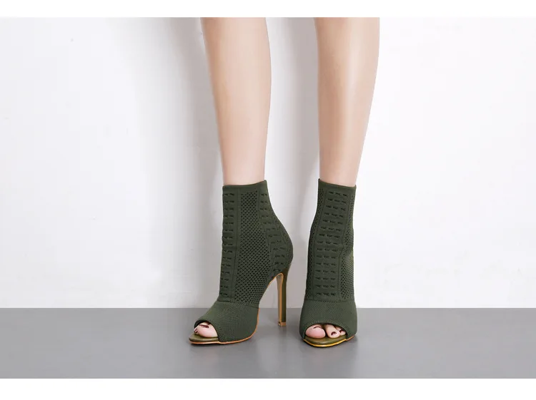 Женские ботинки, зеленые эластичные вязаные ботинки-носки, женские модные ботильоны с открытым носком на высоком каблуке, Кардашьян, женские туфли-лодочки