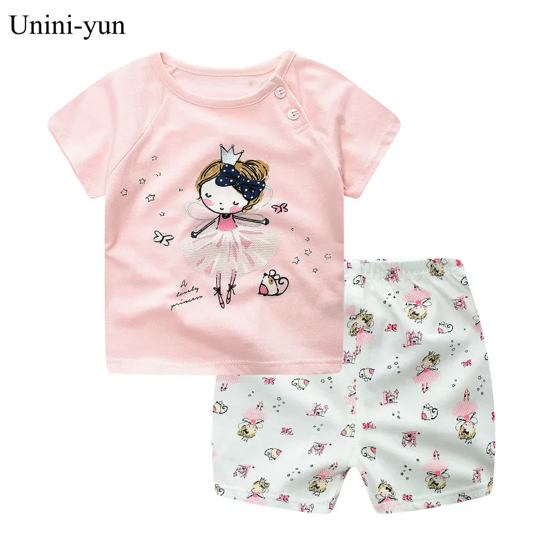 Летняя одежда принцессы для маленьких девочек, одежда для новорожденных, розовая футболка, наряды для детей, одежда для новорожденных девочек, одежда для маленьких мальчиков