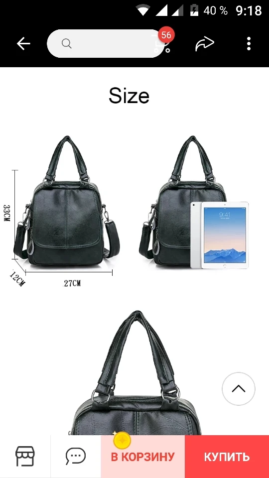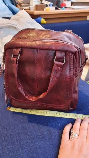 Рюкзак низкого качества, кожзам тонкий и хлюпкий. Присутствует лёгкий запах. Размерная сетка не верная, на фото продавца размеры рюкзака 27см×33см, а по факту 21см×21см, т.е сумка маленькая и квадратная. Между ручками у рюкзака два замка, что наводит на мысль о том что там два отделения, но на самом деле перегородки нет, т.е отделение одно, но зачем тогда два замка? Единственный плюс в том, что рюкзак хорошо пошит, без особых косяков. Не советую брать, пожалейте свои нервы. Доставка в Германию 21 день.