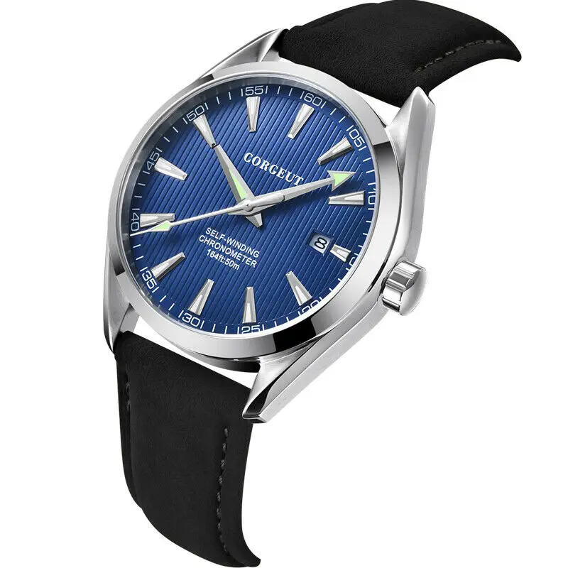 Часы мужские с кожаным ремешком, роскошные брендовые автоматические спортивные с сапфировым циферблатом, с календарем, 41 мм