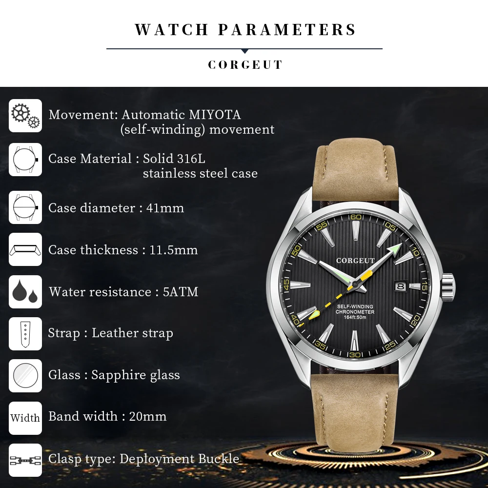 41 мм Corgeut Новое поступление модные Япония MIYOTA сапфировое сте...